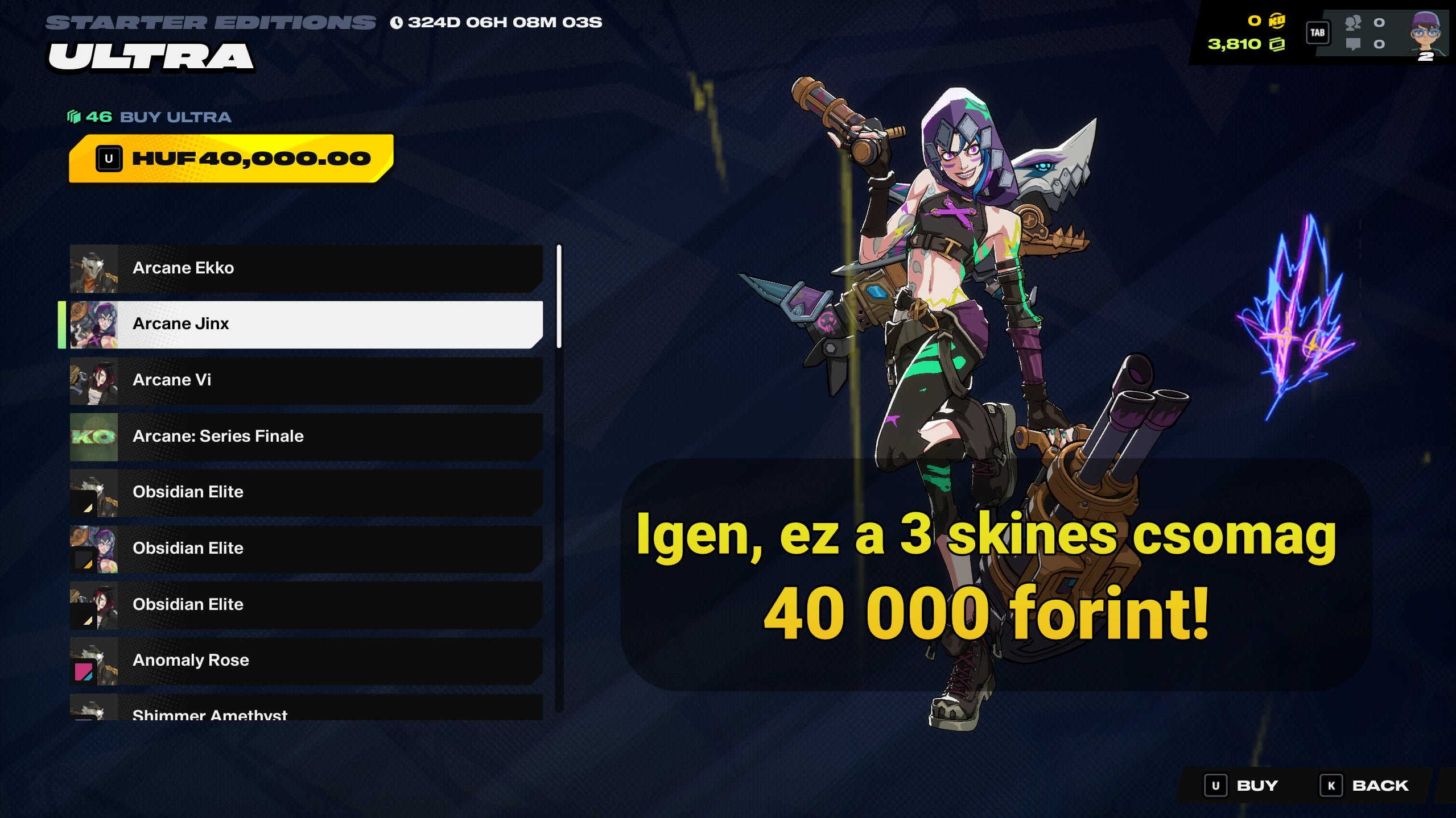 A játékosok szerint a másik probléma a csomagozás. Rengeteg skin csak csomagokban szerezhető meg, például az Arcane karaktercsomag 40 000 forintba kerül, de más pakkok se olcsóbbak 32 000 forintnál, amit a Riot természetesen a KO pontok, az EU-ban hamarosan illegálissá váló árazásával old meg, hiszen nem lehet pontos összeggel fizetni értük.