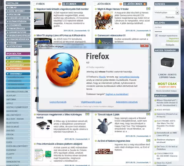 Firefox 6.0 asztali konfigurációkra és noteszgépekre