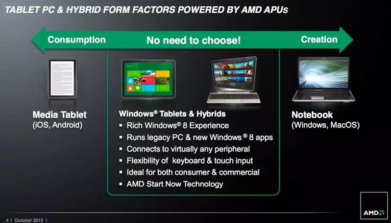 A Hondo alacsony fogyasztásának és kis hőtermelésének köszönhetően akár 10 milliméter vastag táblák is készülhetnek vele, azaz az AMD alapú megoldások alig lesznek vastagabbak, mint napjaink ARM alapú táblái. Az új táblák várhatóan a Windows 8 megjelenésével egy időben válnak elérhetővé, de a januárban megrendezésre kerülő CES 2013 alakalmával még több mutatkozik be belőlük. Az ARM alapú megoldásokkal ellentétben a Z-60 alapú Hondo táblák nem Windows RT, hanem Windows 8 operációs rendszert futtatnak.