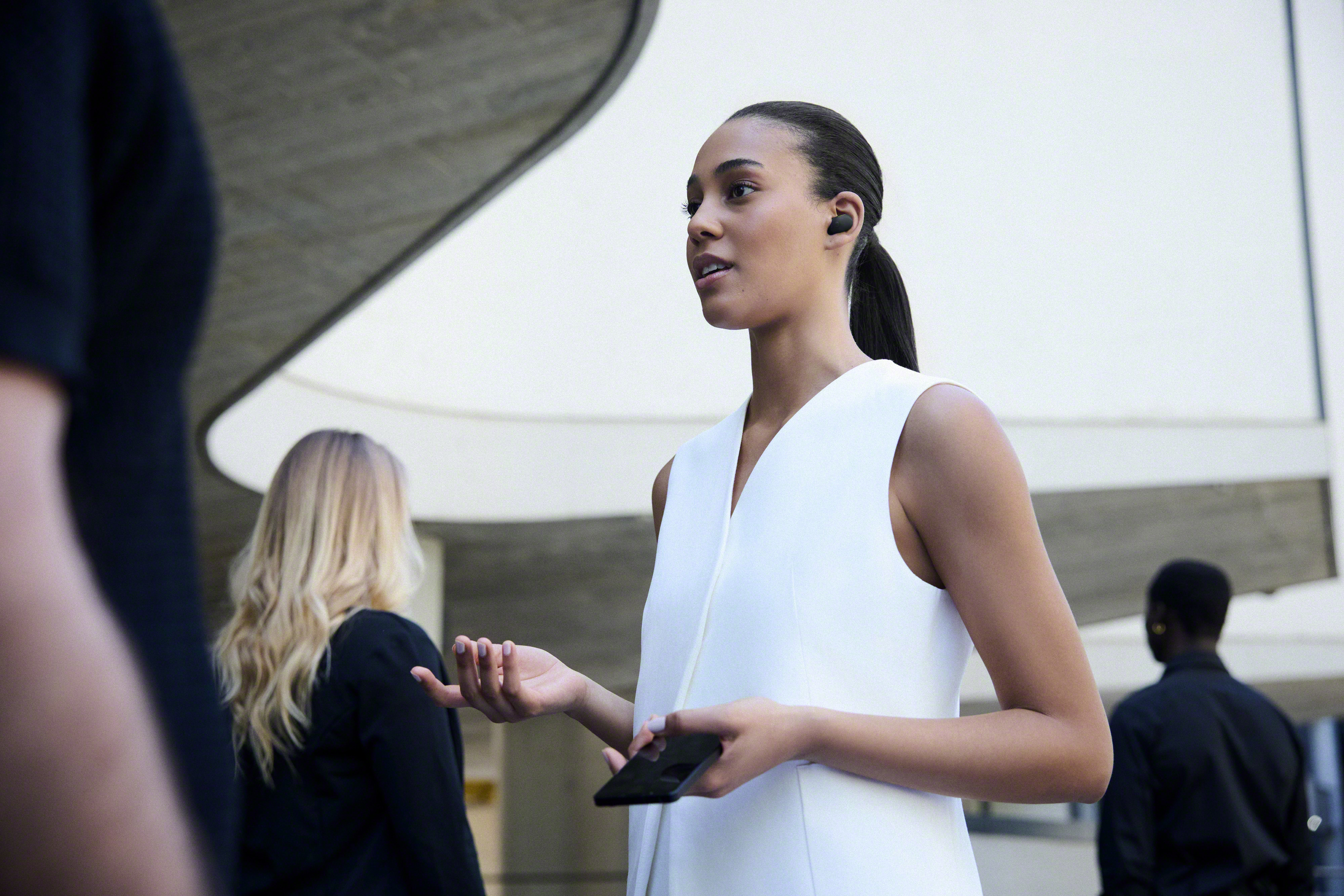 Az eszköz a használat során végez nyomástesztet is, hogy érzékelje, megfelelően illeszkedik-e a hallójáratba, vagy igazítani kell rajta a felhasználónak, és ehhez a mikrofont használja. Elérhető a készülékkel a mobilon futó digitális asszisztens/generatív MI alkalmazás is. A Sony az okostelefonokra telepíthető Sound Connect applikációval pedig egy sor jó funkciót, eszközt vonultat fel. A hangzást például egy fejlett EQ-val lehet nagyon szabadon alakítani.