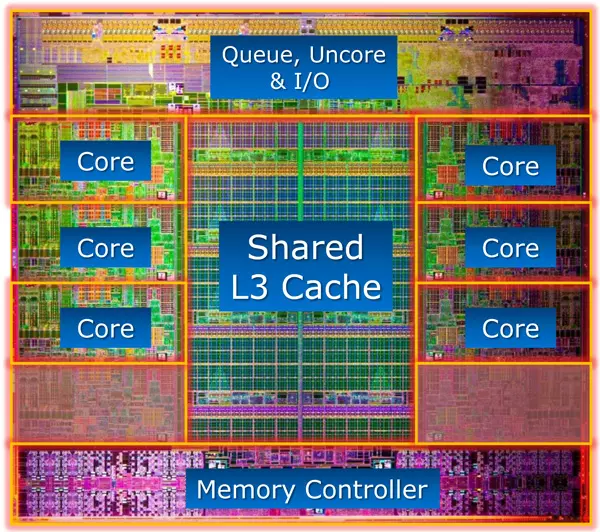 Az új processzorok a processzormagokon és a gyorsítótárakon kívül egyéb komponenseket is tartalmaznak. Ezek között megtaláljuk a QPI linkeket, a négycsatornás DDR3-as memóriavezérlőt, valamint a PCI Express vezérlőt is. A processzorok beépített, négycsatornás memóriavezérlője DDR3-1600 MHz-es memóriatámogatást kínál és maximum 8 darab memóriafoglalathoz tud kapcsolódni. A memória órajeleket, ahogy az lenni szokott, némi tuning segítségével könnyedén megemelhetjük, ha szükséges. A rendszer egyébként – 8 darab memóriafoglalat esetén – 64GB-nyi, illetve akár 128 GB-nyi DDR3-as memóriamodul kezelésére is képes.