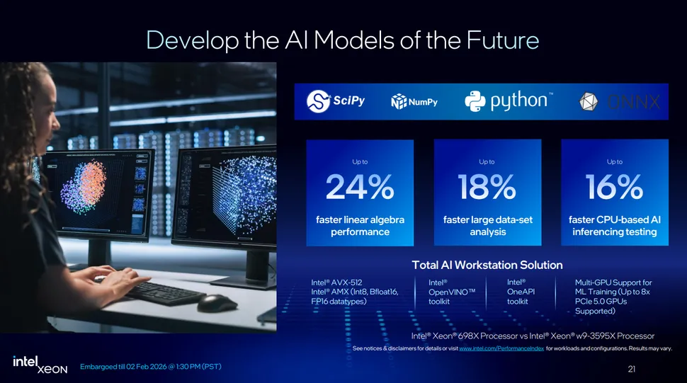 A gyártó szerint a 11-ből 5 modell kerül forgalomba dobozos kivitelben is, míg a maradék 6 csak tálcás verzióban lesz elérhető. A csúcsot a Xeon 698X képviseli majd, ami összesen 86 processzormaggal érkezik, így 26 maggal többet kínál, mint az előző generációs csúcsmodell, a Xeon W9-3595X. Rajta kívül érkezik még egy nagy magszámú verzió, a Xeon 696X, ami 64 processzormaggal büszkélkedhet – kettőjük közül csak utóbbi lesz elérhető dobozos változatban.