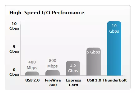 Az Intel és az Apple által kifejlesztett technológia az Intel Light Peak eljárása köré épül és két darab 10 Gbps-os adatcsatornát kínál.