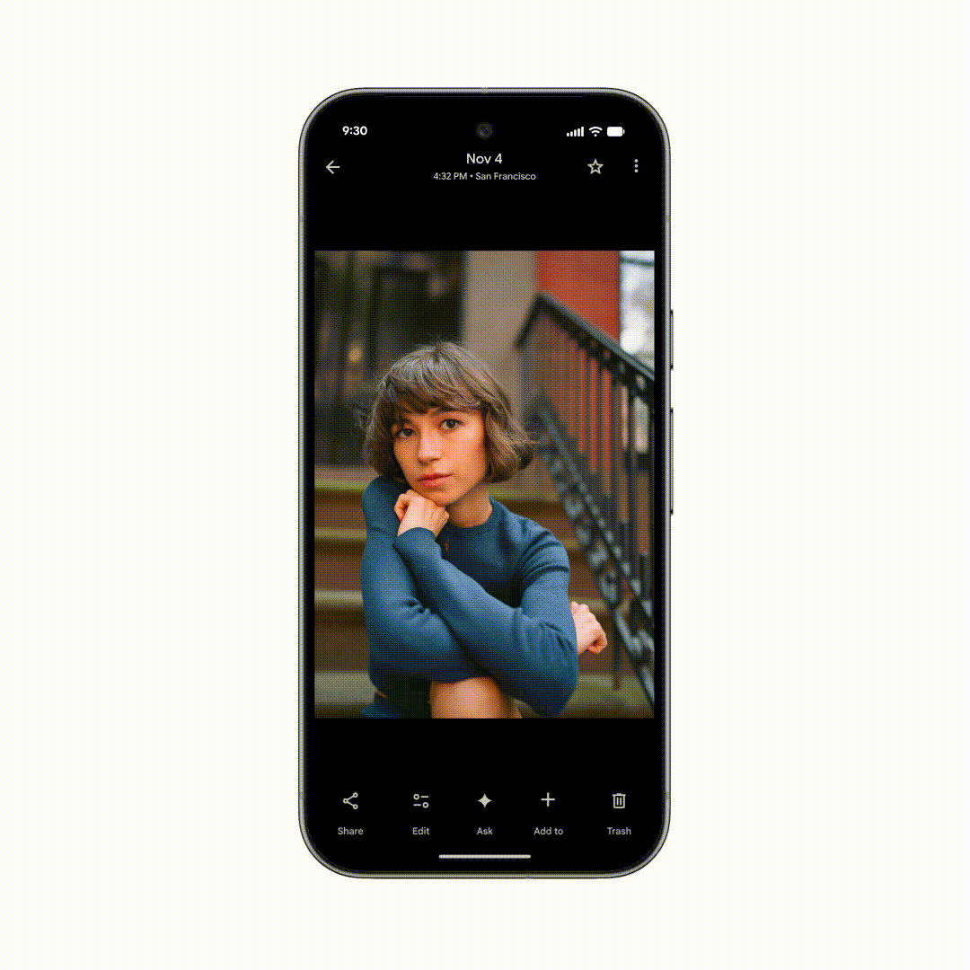 Bevezeti a Google a Fotók applikációban az „Ask” gombot is, ezzel lehetőség lesz olyan beszélgetésbe elegyedni a Geminivel, aminek a központi eleme az adott fotó. Ez új lesz az Android és az iOS felhasználók számára egyaránt. Ezáltal nemcsak azonnali szerkesztési utasítás lesz kiadható, hanem beszélgethet az MI-vel a felhasználó a kép módosításáról, és általános ismereteket is szerezhet annak tartalmáról. Jól jöhet a funkció, ha például a nyaraláson lefotózott érdekes helyekről utólag szeretne még többet megtudni, és így tovább.