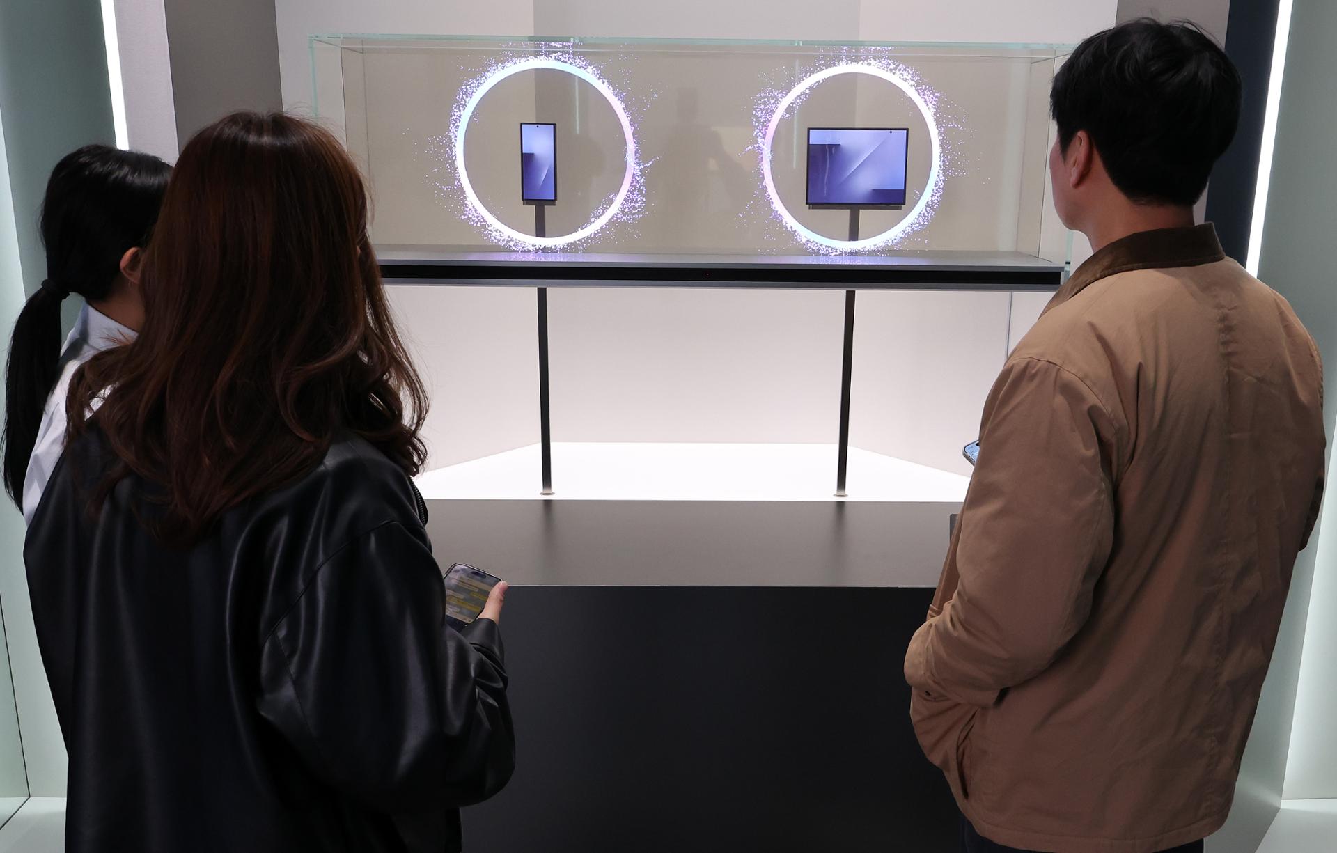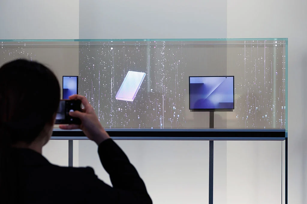 Egy „üvegkalitkában” lehetett közelebbről szemügyre venni a triplán hajtogatható Samsung Galaxy eszközt.