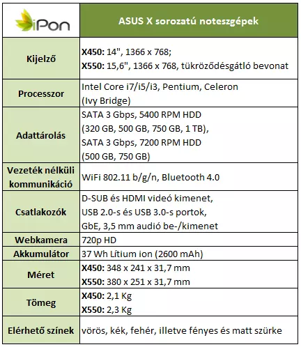 Az új, általános használatra szánt Windows 8-as notebookok közül Magyarországon elsőként az X550CC modell vált elérhetővé, amelynek ajánlott végfelhasználói ára 134 900 forintról indul.