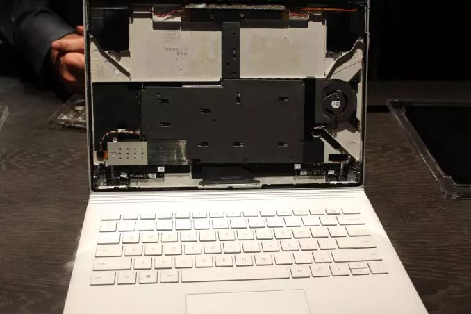 A billentyűzetes alsórész ezúttal nem csak akkumulátort, USB portokat és SD memóriakártya-olvasót tartalmaz, hanem egy szokatlan extrát is: egyes modellekhez kérhető Maxwell architektúra köré épülő Nvidia dGPU, ami a billentyűk alatt lakik, így a Surface Book karcsú és könnyű kivitele ellenére abszolút nem lesz vérszegény megoldás, már ami a GPU teljesítményt illeti.