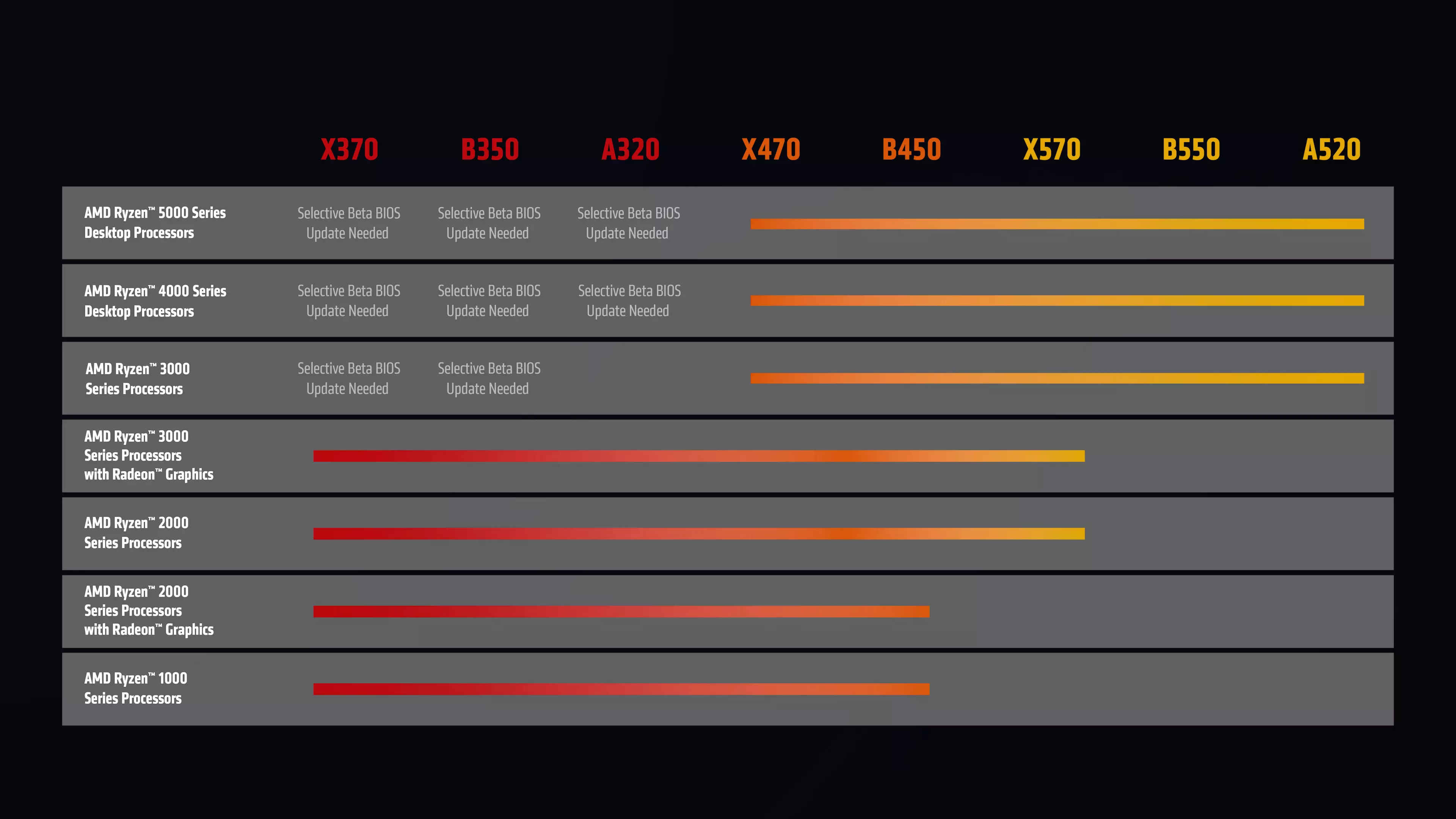 Az AMD legnagyobb alaplapgyártó partnerei közül néhányan már bejelentették, a többiek pedig a következő napokban jelenthetik be, hogy a napokban bemutatott processzorokkal kapcsolatban milyen forgatókönyvet alkalmaznak, már ami a hozzájuk passzoló BIOS-ok érkezését illeti. Úgy döntöttünk, egyszerre közöljük a BIOS-okkal kapcsolatos információkat az új processzorok érkezésének hírével, így minden egy helyen lesz – a forgalmazás úgyis később, április 4-én indul meg, ahogy már említettük fentebb. Frissebb információk esetén bővítjük a lenti leírást, ugyanis még nem minden gyártónál tiszta a kép.