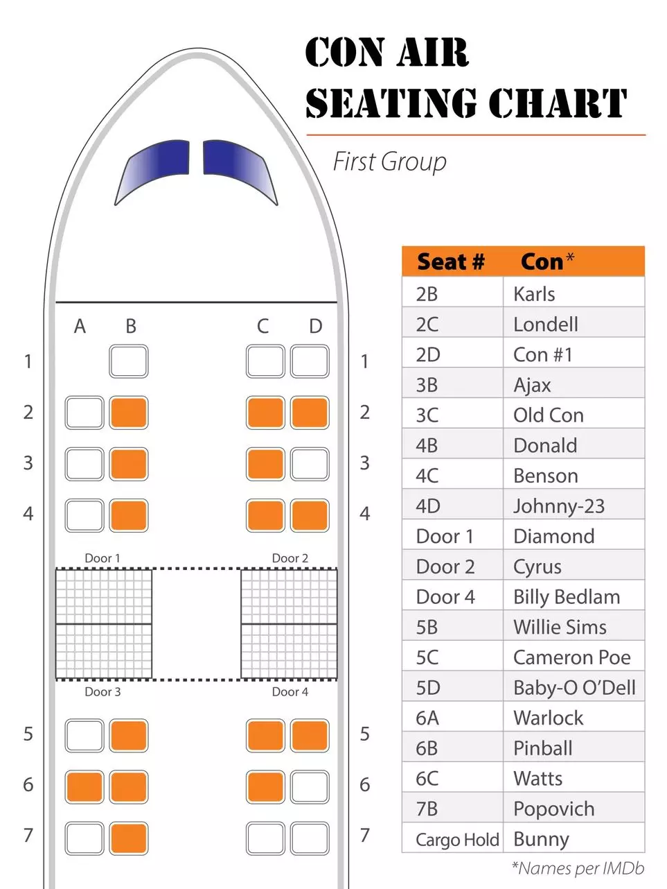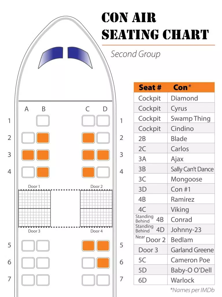 A Reddit egyik (vélhetően) közepesen őrült felhasználója rendszeresen állít össze és közöl meglepő dolgokat, információkat különböző filmekkel kapcsolatban. Most úgy döntött, hogy pontosan részletezi, hogy az egyes rosszéletű gyilkosok pontosan hol ültek a Fegyencjárat repülőgépén.
