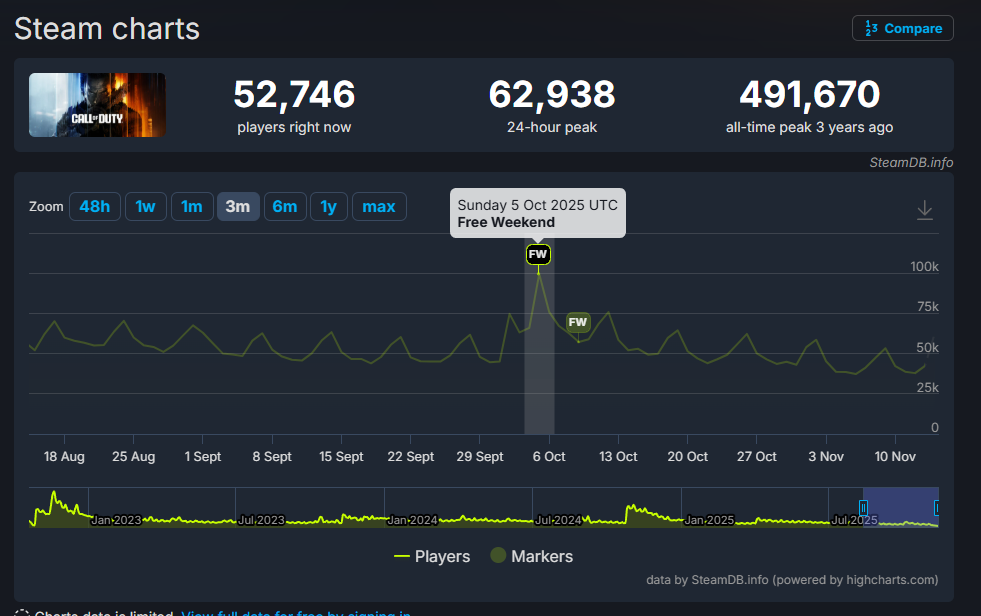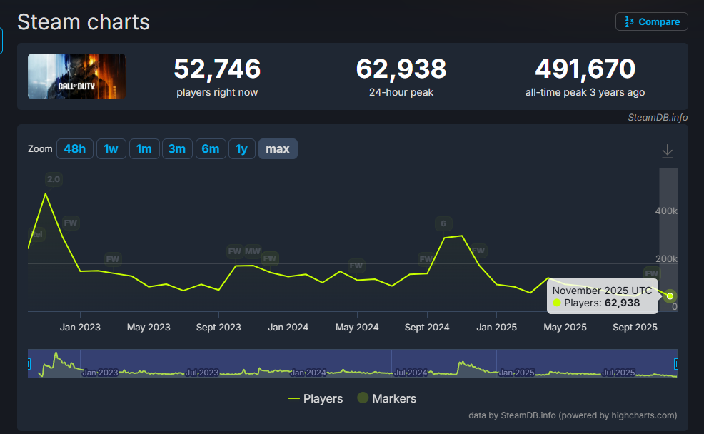 De ez csak az egyik része a dolognak. A másik, az a hype hiánya. Egyszerűen a Battlefield 6-nál mindenki számolta vissza napokat, míg az új Call of Duty-ról úgy tűnik, hogy még a legnagyobb rajongók is megfeledkeztek. Ez olyannyira igaz, ha megnézzük az élő STEAM statisztikákat, a játékkal olyan kevesen játszanak, mintha meg sem jelent volna.
