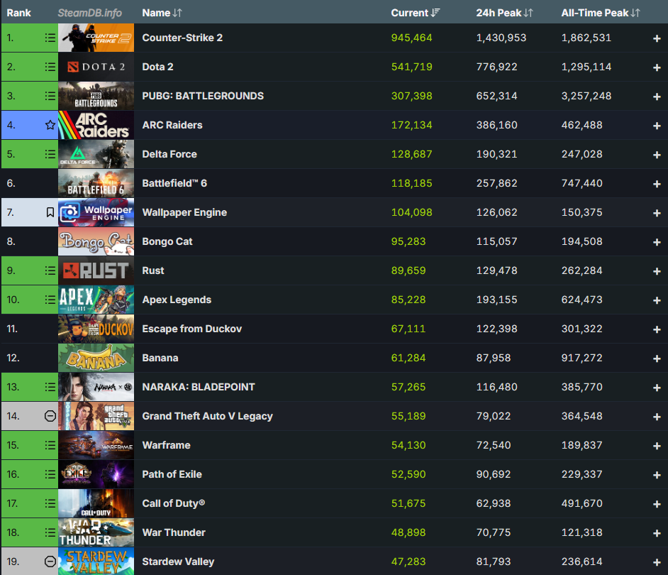 - Clair Obscur: Expedition 33: 145 063 játékos
