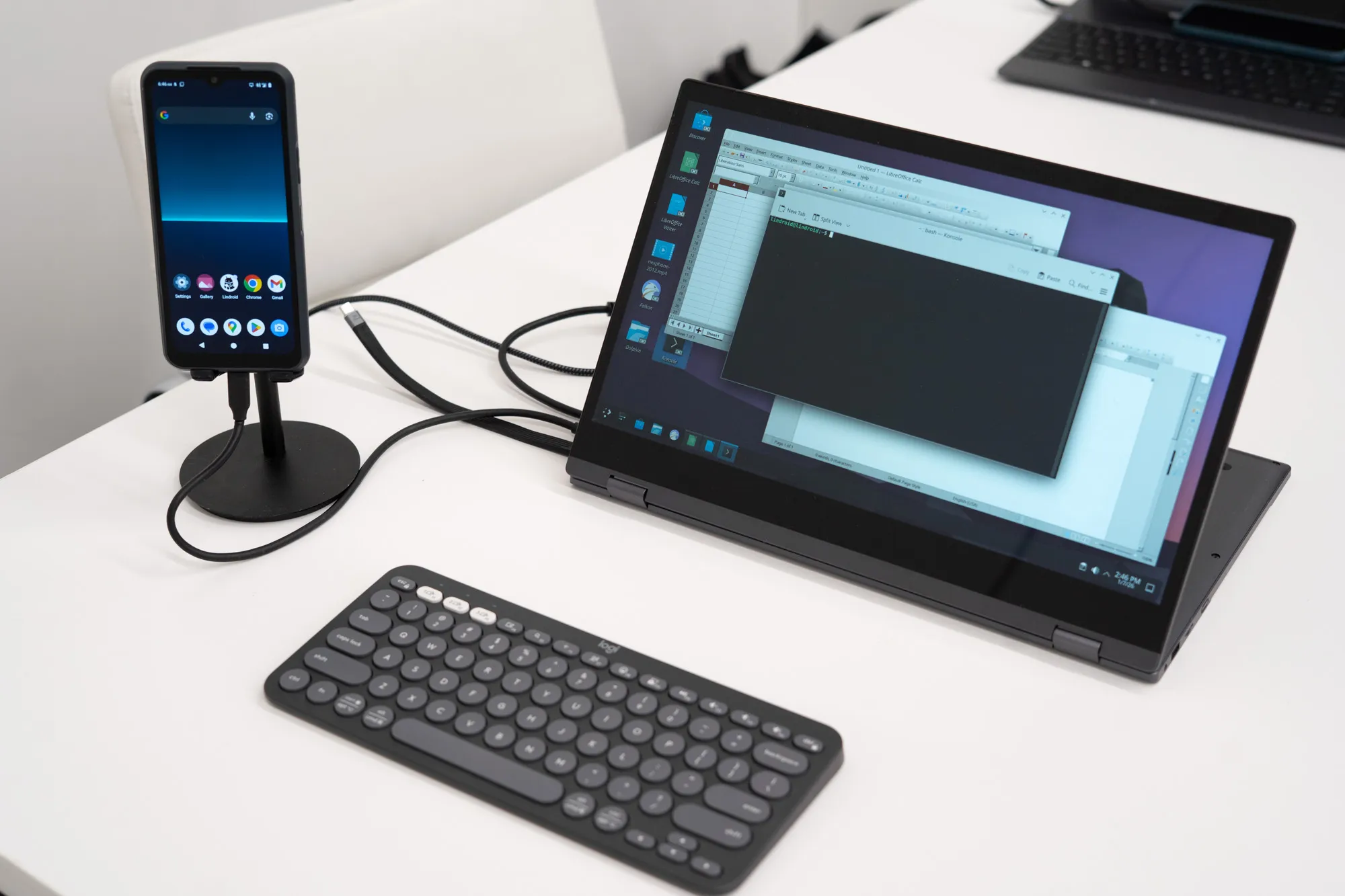 A szerkezet egy 6,58 hüvelykes méretre szabott, IPS panelt foglal keretbe, ami Full HD+ felbontást és akár 120 Hz-es képfrissítést is nyújthat. A Gorilla Glass 3 üveggel védett felület azonban itt csak másodlagos, hiszen a cég elképzelése szerint sokszor az USB-C aljzaton keresztül csatlakoztatott monitorral lesz használatban a szerkezet a Linuxot vagy az armos Windows 11-et előtérbe helyezve.