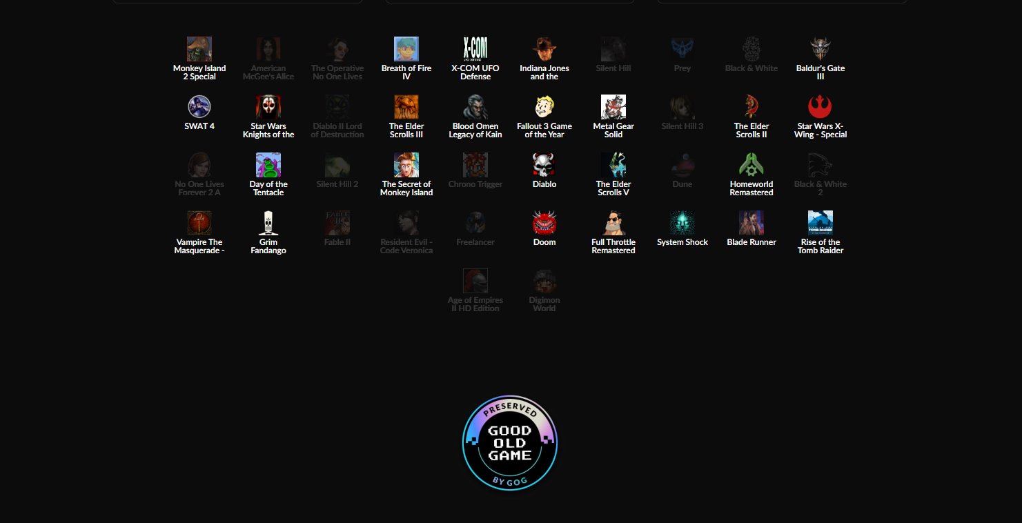 A GOG.com elhatározta, hogy megmenti a klasszikus videojátékokat. A közösség erejével folyamatosan nyomást gyakorol a jogtulajdonosokra, hogy ugyan porolják már le rég elfeledett címeiket, és engedjék már meg, hogy újra árulni lehessen őket.