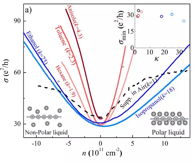 A probléma megoldása érdekében a kutatók különféle folyadékokba merítették a grafént és megmérték vezetőképességének változásait. Úgy találták, hogy az áramló elektronok sebessége radikálisan nő, ha elektromosan semleges folyadékba áztatják a grafénlapot. Ezek a folyadékok nagy mértékben képesek energiát elnyelni, és a grafén esetében ezzel elnyomják a szennyeződések által keltett elektromos mezőket, így biztosítva az elektronok akadálymentesebb áramlását. A legnagyobb sebességet akkor érték el, amikor a semleges folyadék anizol volt, egy ánizsra emlékeztető illatú, színtelen anyag.