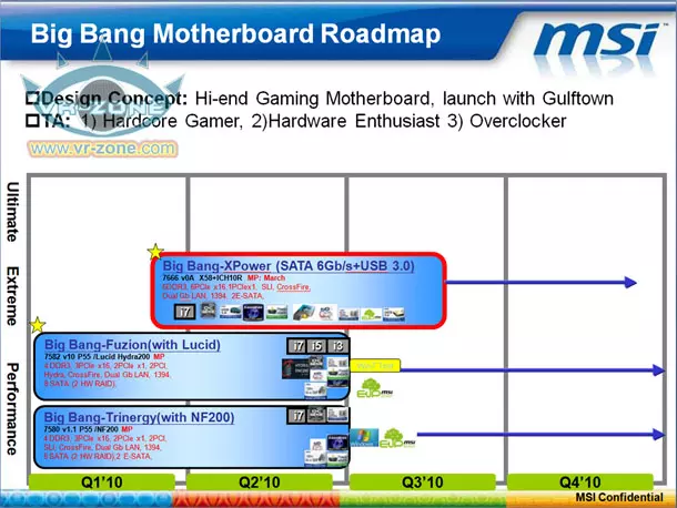 Az MSI Big Bang alaplap családjában a jelek szerint első körben három modell lesz jelen. Az újdonságok közül a Trinergy és a Lucid Hydra chipje köré épülő Fuzion modellek már elérhetőek, ám a nem is oly távoli jövőben érkezik a harmadik családtag is, amely a Big Bang Xpower nevet viseli.