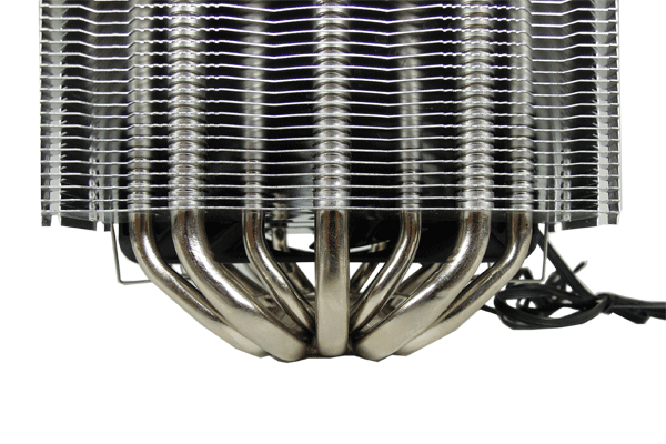 Az újdonság rézből készült, nikkelborítással ellátott talpazatától összesen hét darab hőcső indul el az alumínium lamellák felé. A hőcsövek közül négy darab 6 milliméteres, három darab pedig 8 milliméteres átmérővel büszkélkedik - mindannyian rézből készültek és nikkelborítást kaptak.