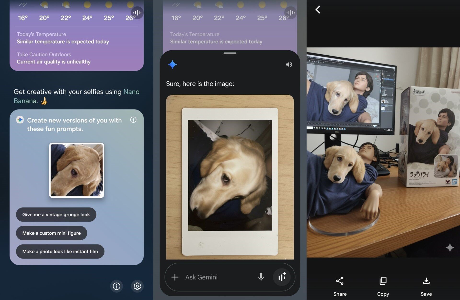 A vállalat elképzelése szerint a Galaxy AI által nyújtott kreatív lehetőségeket fogja bővíteni a Nano Banana integráció. A Now Brief napi jelentésekben feltűnhetnek majd olyan kártyák ezáltal, amik véletlenszerűen kiválasztott, de a mesterséges intelligencia által kedvesnek vélt fotók átdolgozására sarkallják az embereket. A kártyáról lehet majd utasítani előre definiáltan vagy egyedi elképzelés szerint a Nano Banana modellt, hogy miként alakítsa át az adott képet.