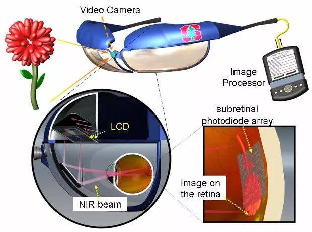 A szerzők konkrét javaslata szerint egy hajlékony szilícium lapkába sok-sok fotodiódát kellene belevésni, és az egész rendszert irídium-oxid elektródákra helyezni. A beérkező fény apró töltéskülönbségeket generálna a diódákban, és a jeleket elektródák adnának át az idegsejteknek, amelyek továbbítanák ezeket az agyi központba. A retinába beültetve a rendszer profitálhatna a szem felépítéséből adódó előnyökből, így a páciens képes lenne szemét különböző irányokba fordítani és tárgyakra fókuszálni. Ideális esetben az idegek idővel teljesen behálóznák az elektródákat, növelve a rendszer érzékenységét.