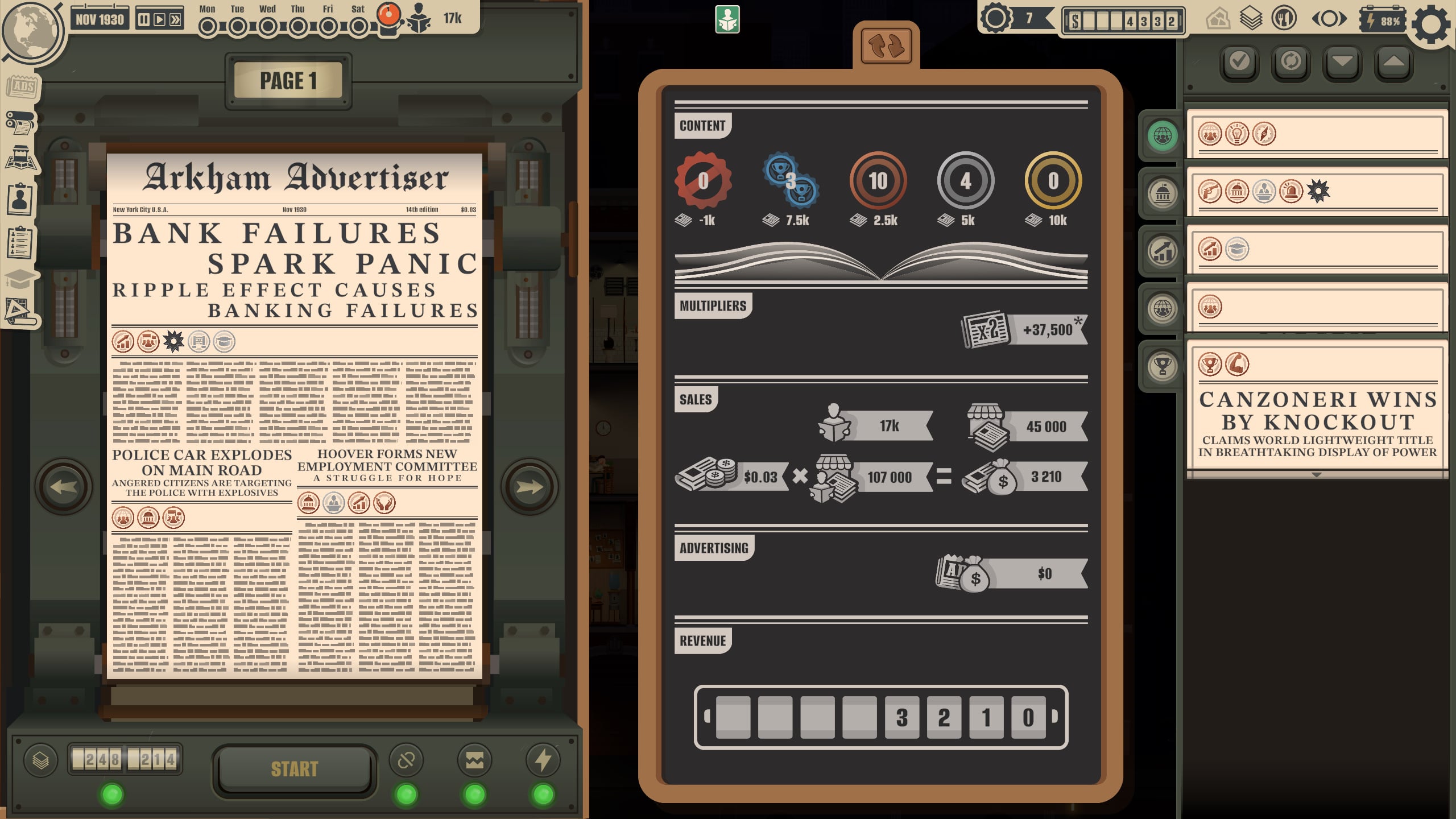 A cikkek és az újság oldalainak megtervezése is komoly feladattá válik idővel. Nem csak arról van szó, hogy elkészülnek a cikkek és bedobáljuk őket a hasábokat szimbolizáló slotokba. Vannak témák, amik nagyon jól együttműködnek és jó, ha egy oldalon jönnek ki, és idővel meg kell határoznunk a saját hangunkat is. Lehetünk komoly, tényszerű adatokkal, edukációval, informatív cikkekkel operáló úgymond komoly újság, de szenzációhajhász, érzelmi húrokat pengető, izgalmas cikkeket és pletykákat ígérő „ponyva” is.
