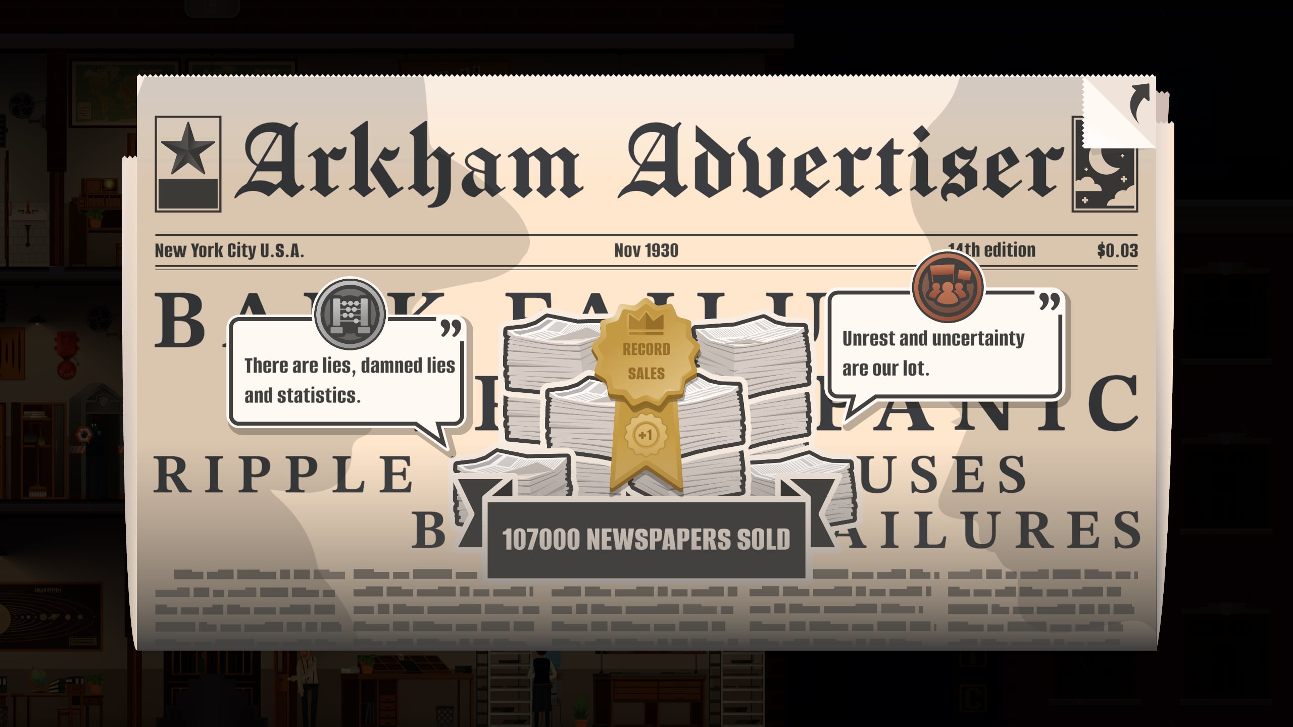 Aki valaha is azt érezte, hogy a szíve mélyén újságíró szeretne lenni annak itt a lehetőség. Mindegy, hogy az igazság kiderítésére, leleplező cikkekre, oknyomozói munkára, szenzációs hírekre vagy piszkos titkokra koncentrálunk, a lényeg az lesz, hogy a lapunk hasábjai megteljenek cikkekkel és ebből pénzt keresve egyre nagyobb szerkesztőséget és végső soron médiabirodalmat építsünk. A Studio Nul Games menedzsment-stratégiája egy post-noir stílusban megrajzolt 1930-as évekbeli szerkesztőség épületébe repít, ahol a a legjobb hírekért folyó verseny legalább olyan kemény, mint a korrupcióval, érdekekkel és kenőpénzekkel átitatott utcákon folyó élet.