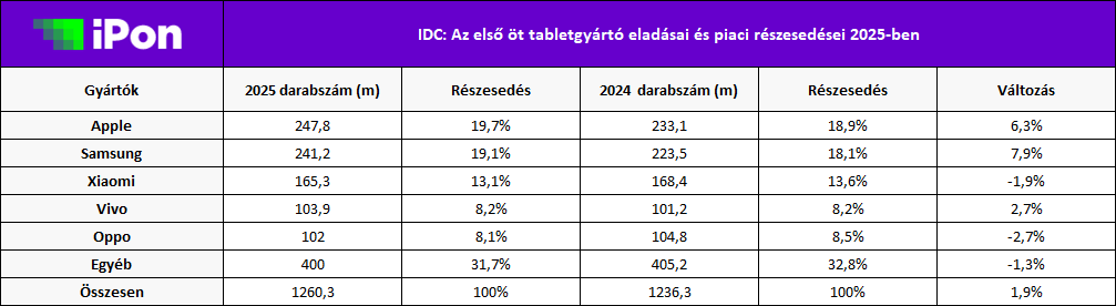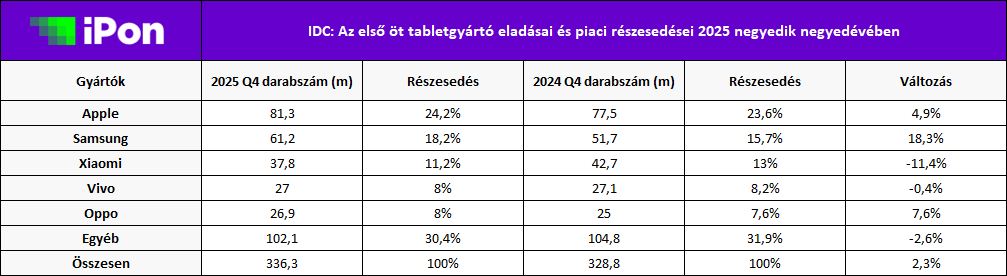 A toplistáról lecsúszott vállalatok forgalma összesen 400 millió készülék lett 2025-ben, miközben egy évvel korábban még 405,2 milliós forgalom felett rendelkeztek. Érdekesség ezen a ponton, hogy 2016-ban még sokkal változatosabb volt a piac, annak idején a top 5-ből kimaradt cégeknek még közel 630 milliós darabszámot sikerült összehozni, amivel 42,7%-os részesedést értek el a mostani 31,7% ellenében.