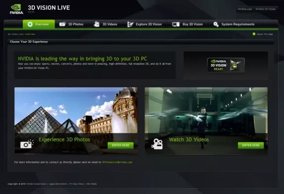 Az Nvidia 3D Vision Live portálja egyelőre csak béta verzióban érhető el, azaz a weblap és a hozzá kapcsolódó szolgáltatások még tartalmazhatnak kisebb-nagyobb hibákat. Aki kíváncsi az új portálra, kattintson ide!