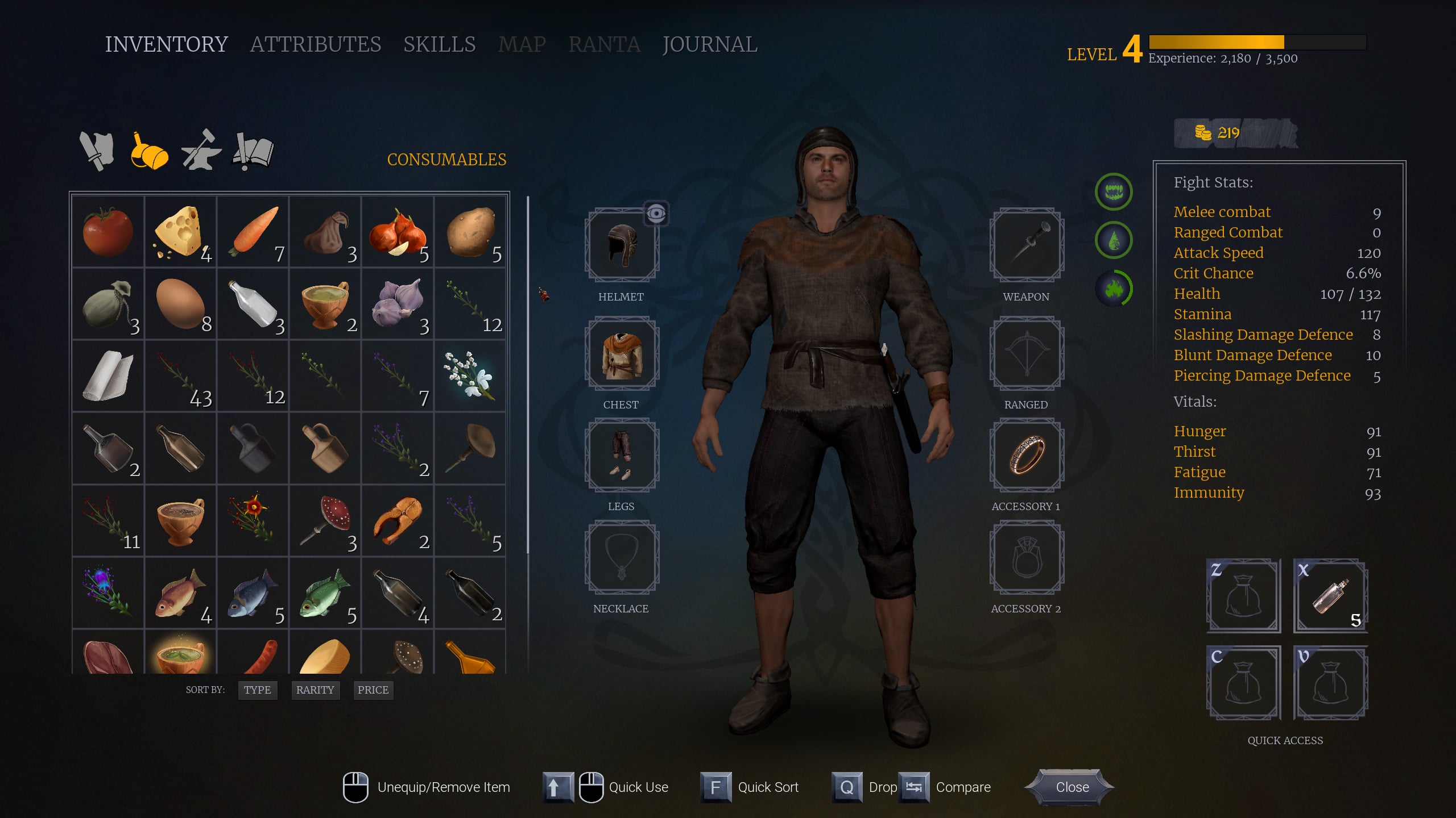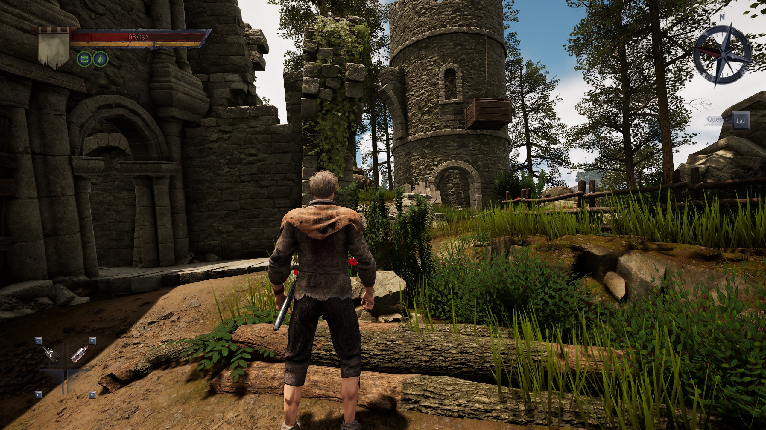 Egy, a farkasok által épp (az elmondása szerint) feltépett gyomrú vadász elküld kötszerért és gyógyfüvekért, de ha megtámadom simán legyőz és amúgy a farkasokat is one-shotolja, ha rátámadnak. Felszerelés tekintetében is érdekesség, hogy ugyan vizet nem tudunk gyűjteni, de bármely kerekedőtől vehetünk üveges vizet 1 aranyért (biztos víz-maffia van a szigeten), valamint az ásónk is pont egy kiásást bír ki, ha pedig eldobunk egy fáklyát, azt már nem tudjuk ismét felvenni.