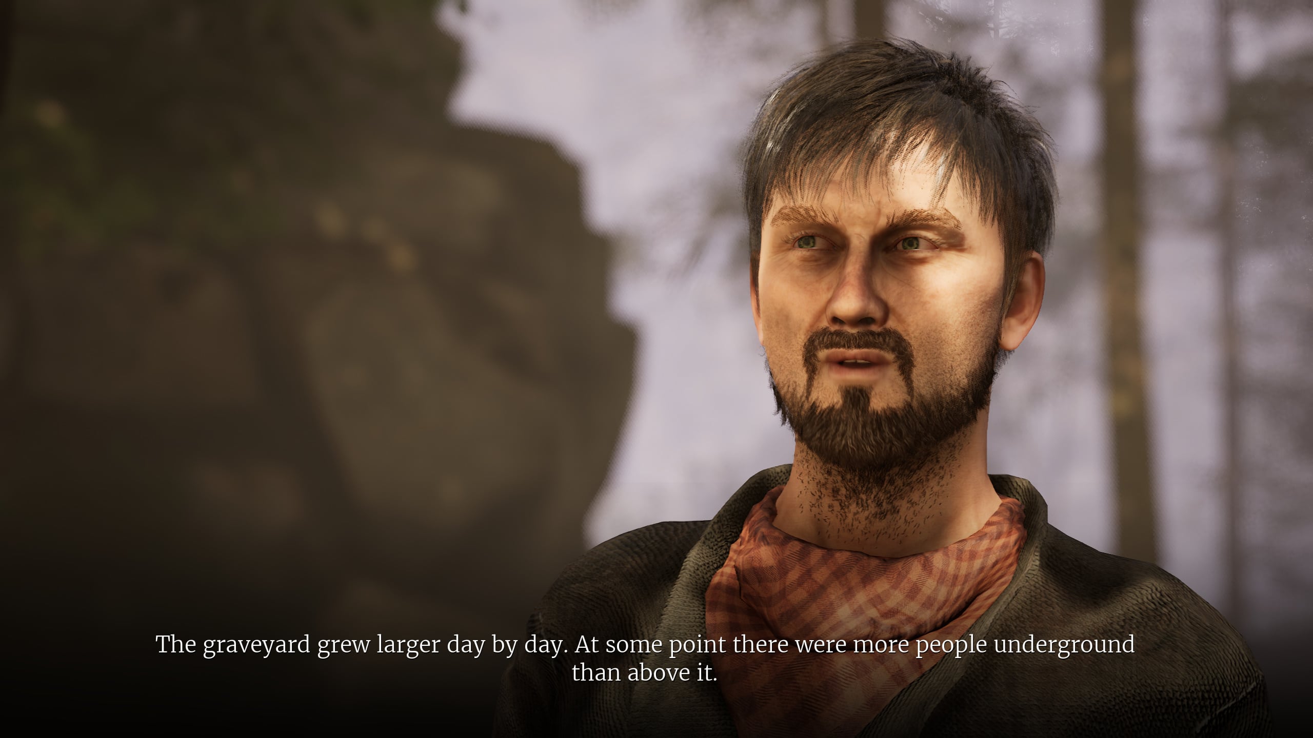 Kezdetben és még jó pár órán át a történet eléggé földhözragadt, emberi léptékű marad. Megismerünk pár helyit, küldetéseket kapunk – semmi komoly, egy elhagyatott falu csempészlerakatának kirablása, elrejtett kincsesládák megtalálása, egy szekér 4 kerekének a visszaszerzése, ilyesmik – miközben a helyi faunával is összetalálkozunk, gyűjtögetünk és igyekszünk fejlődni. Vagyis viszonylag sokáig (10+ óra) nem a világmegmentésre készülünk, hanem túlélni próbálunk egy kietlen vidéken, ahol mindenki a maga útját járja, és komolyan meg kell küzdenünk azért, hogy feljebb másszunk a táplálékláncban.