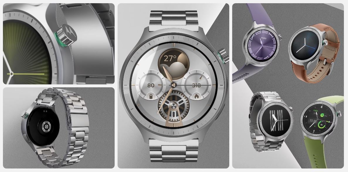 Az okosóra 47 milliméteres tokkal rendelkezik, tehát elég nagy. Hölgyeknek nem igazán ajánlott emiatt, de talán később kiad majd a Motorola egy kompaktabb változatot is, hogy vékonyabb csuklón is kényelmesen hordható legyen. Az óra szíja 22 milliméteres, bármilyen szabványos szíjat fel lehet rá akasztani, és a Motorola is többféle változatot fog kínálni. Szilikon, bőr és acél szíjjal egyaránt megvásárolható lesz a termék.