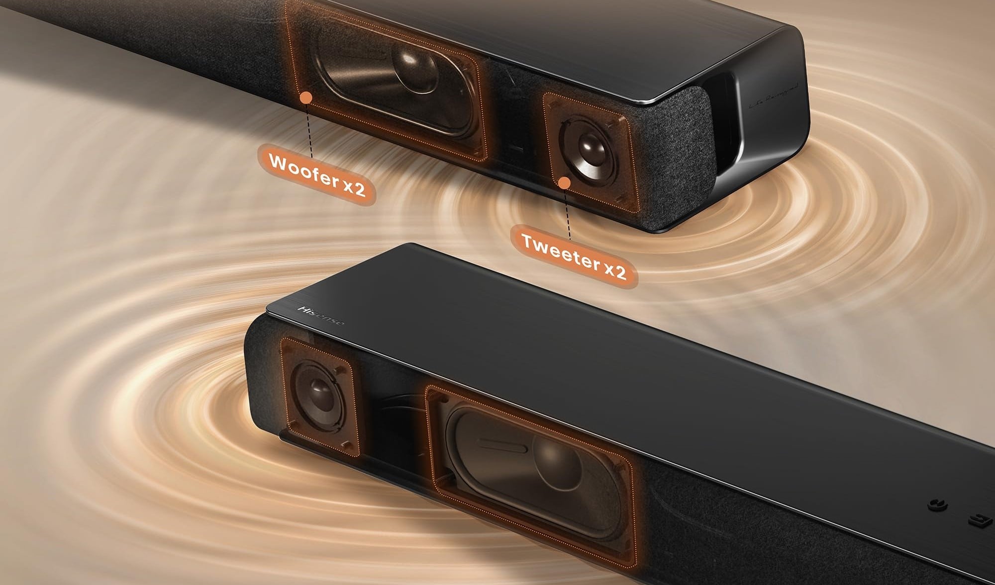 Oldalanként két hangszórója van a hangprojektornak, így képes kellően széles frekvenciatartományt lefedeni a hangjával. Van benne két darab magassugárzó és két darab mély-középhangszóró, ezeket teljesen a szélére rendezték a tervezők, ezzel is növelve az általa nyújtott teret.