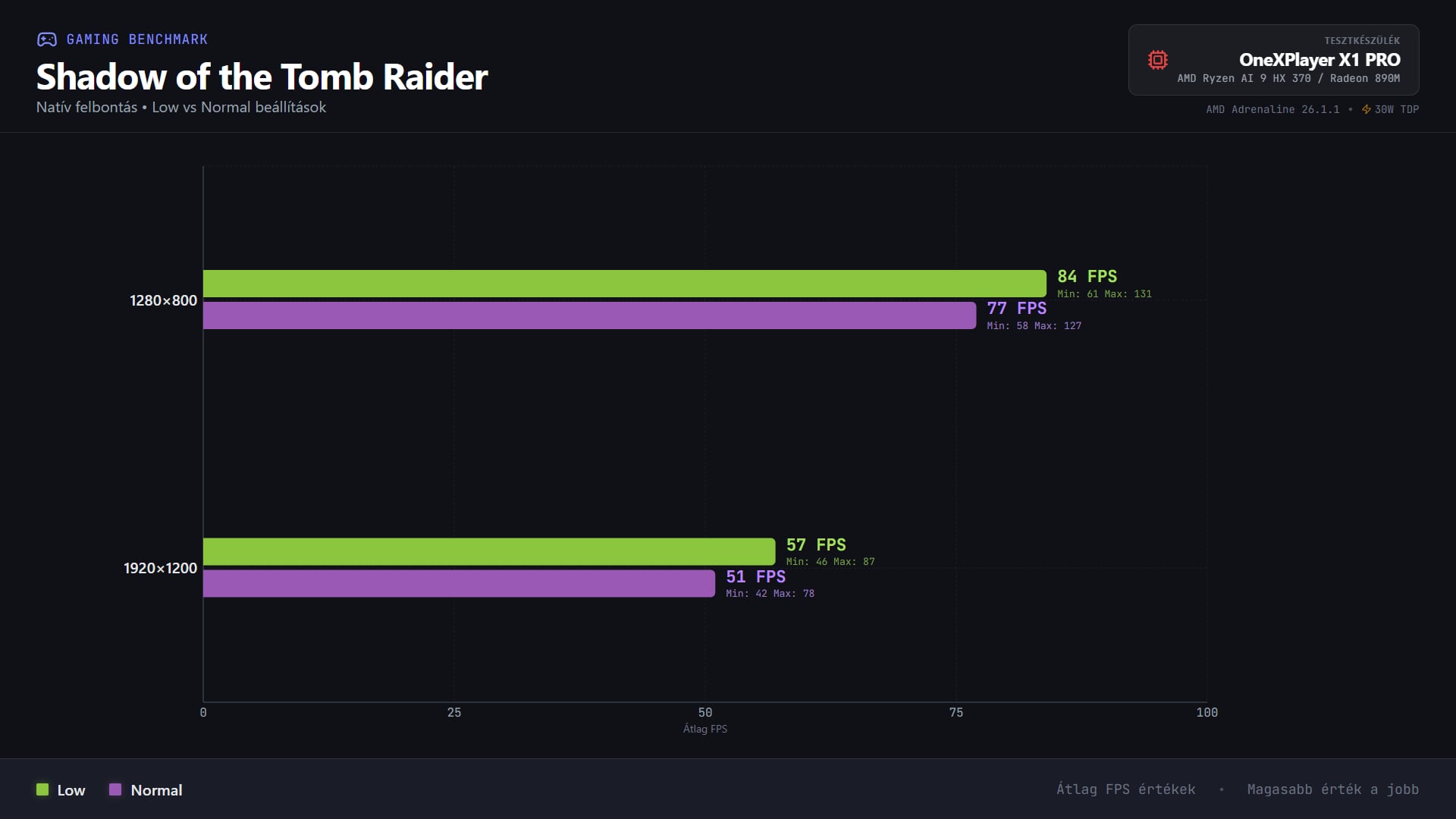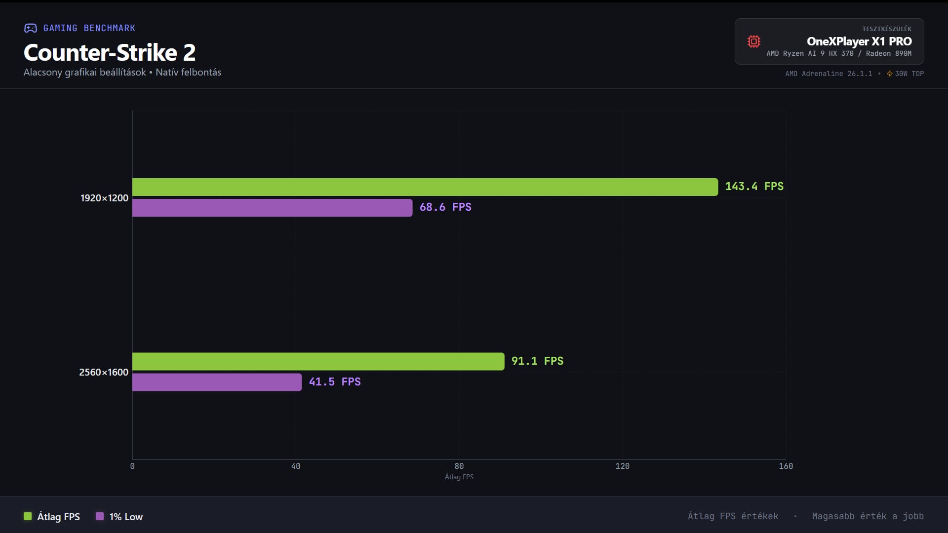 Nagy teljesítményt igénylő címek esetében sokat kell trükközni, ezek többségét nem integrált GPU-kra tervezték, ugyanakkor egyáltalán nem lehetetlen egy élvezhető sebesség megteremtése. Visszafogott vizuális beállításokkal és maximális teljesítménnyel az élmény még a Cyberpunk 2077-ben is játszható, a CS2 pedig végre natív felbontáson is röccenés nélkül fut.
