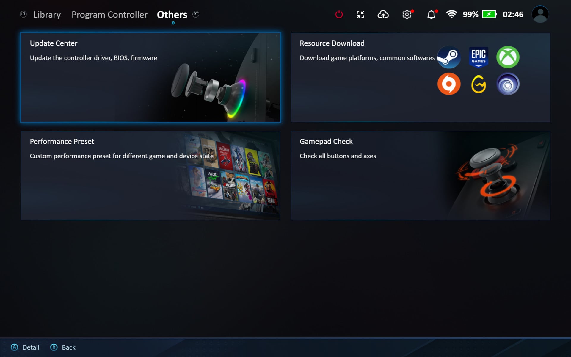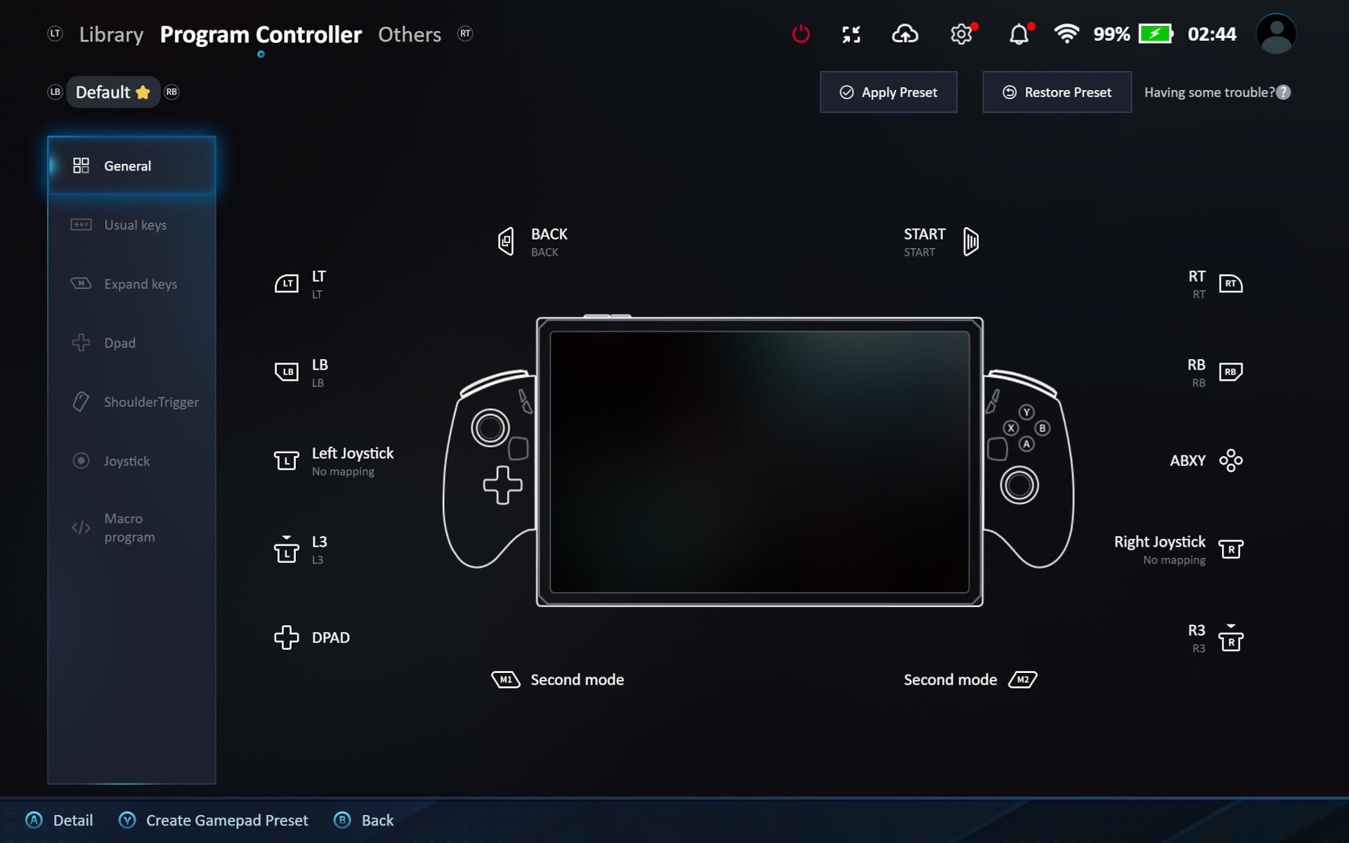 Illetve azt, hogy valószínűleg szükség esetén a Steam OS már rendelkezik megfelelő támogatással, ha csak játékgépet szeretnénk csinálni az X1 PRO-ból. Itt a gép legfontosabb frissítései mellett elképesztő alapossággal eshetünk neki a kontroller beállításainak, külön fület kapott a D-pad, a ravaszok, a segédgombok és az analógok is, vannak makrók és játékonként megszabható profilok is.