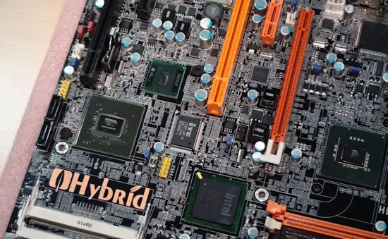 A különleges megoldás a Hybrid P45-ION-T2A2 típusjelzést viseli, a termékről a TweakTown unkatársai már készítettek egy kis videót is. Az alaplap P45-ös lapkakészlettel ellátott részéhez egy LGA-775-ös processzorfoglalat, valamint a szokásos memória slotok és három darab bővítőhely, köztük egy PCI Express x16-os slot is tartozik. A bővítőhelyek alatti részen, azaz az alaplap alsó harmadán egy Nvidia ION lapkakészletre épülő megoldás foglal helyet Atom processzorral és integrált videó vezérlővel. A rendszer ezen részéhez is tartoznak bővítőhelyek, valamint memória slotok is  (ezúttal So-DIMM típusú a helykihasználás miatt). Az ION rendszer passzív hűtést kapott.