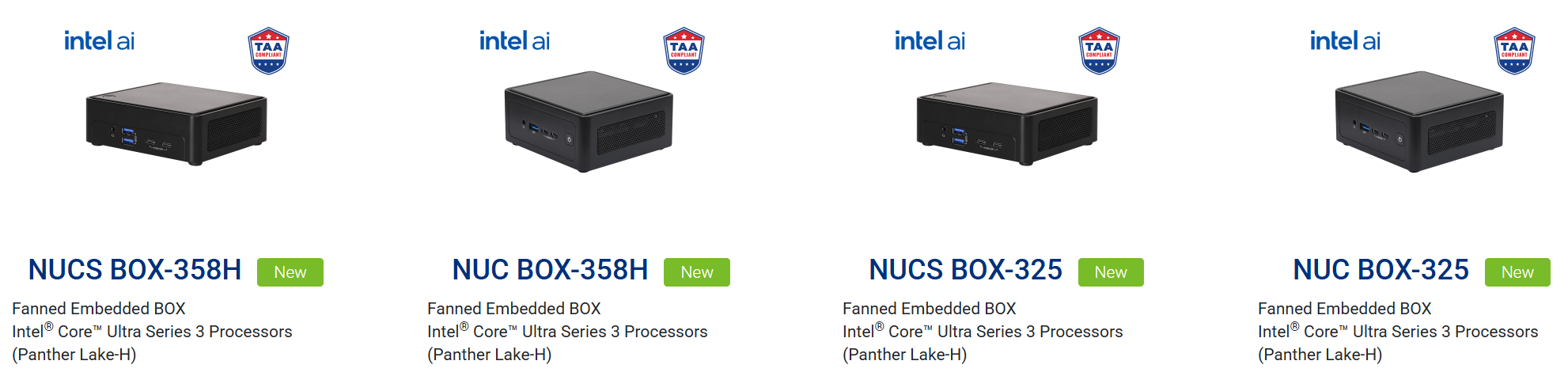 Alapok terén két kivitel áll rendelkezésre: az alacsonyabb 38 milliméteres magassággal bír és egyetlen 2,5 GbE portot tartalmaz (NUC BOX), míg a másik 49 milliméter magas kivitelben kerül forgalomba és már két darab 2,5 GbE porttal szerelik fel (NUCS BOX). Az alapterület mindkét esetben 117,5 x 110 milliméter, illetve az általános felszereltség is nagyon hasonló, leszámítva a fentebb említett különbséget. A magasabb ház ezúttal 2,5 hüvelykes bővítőhelyet, illetve egyéb extra bővítőhelyet sem rejt.