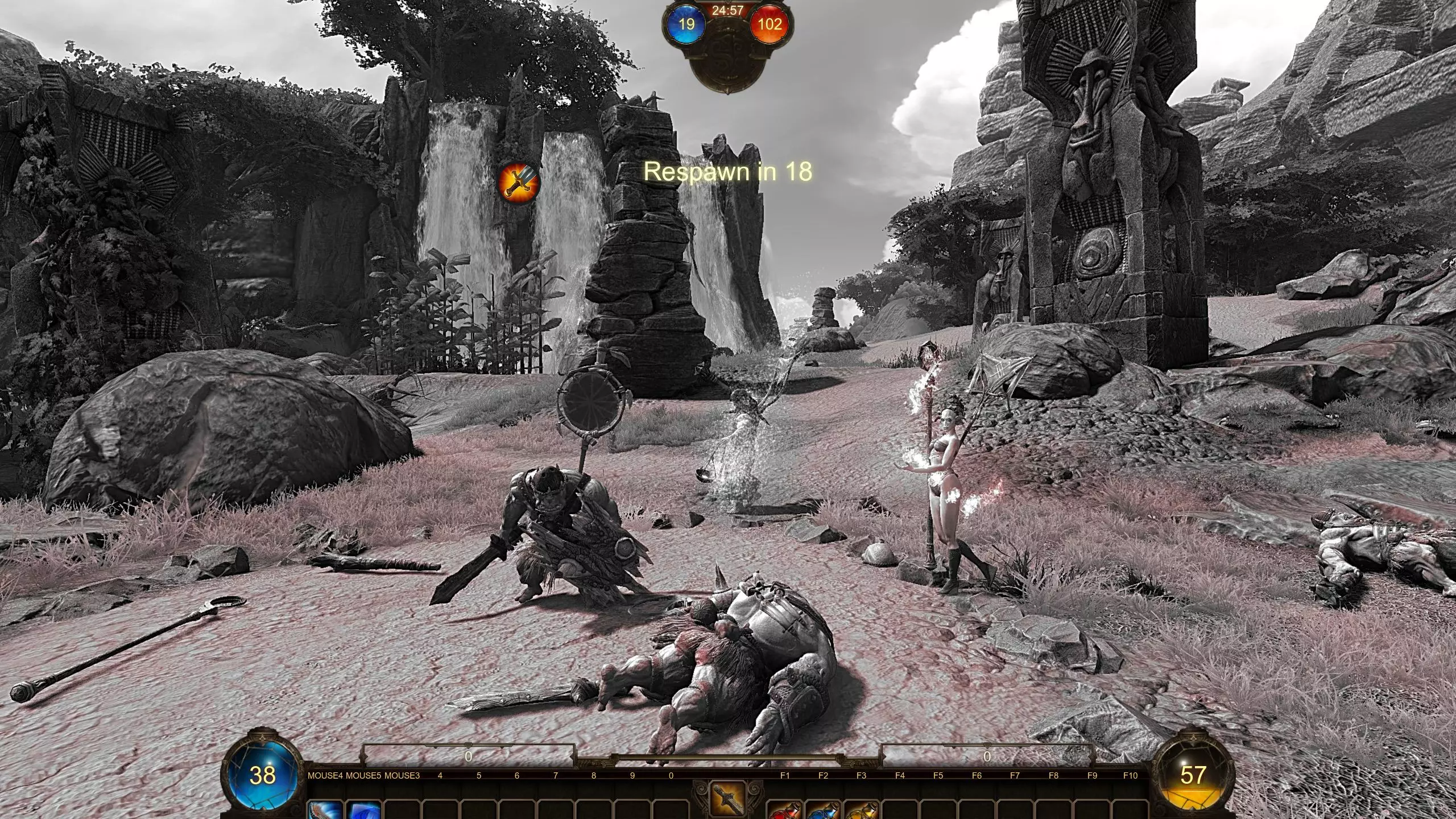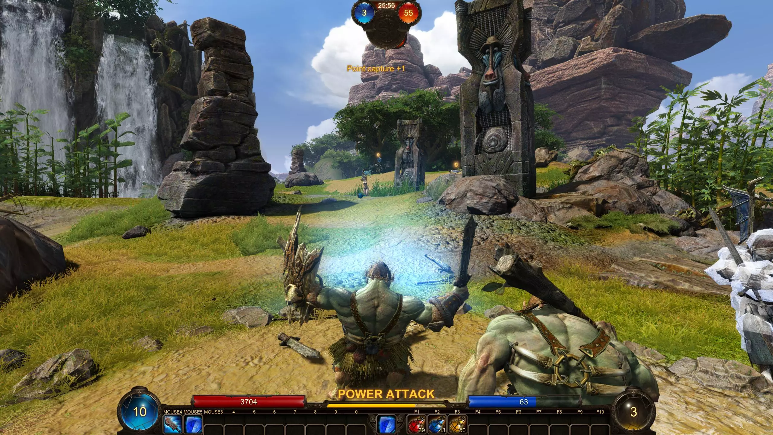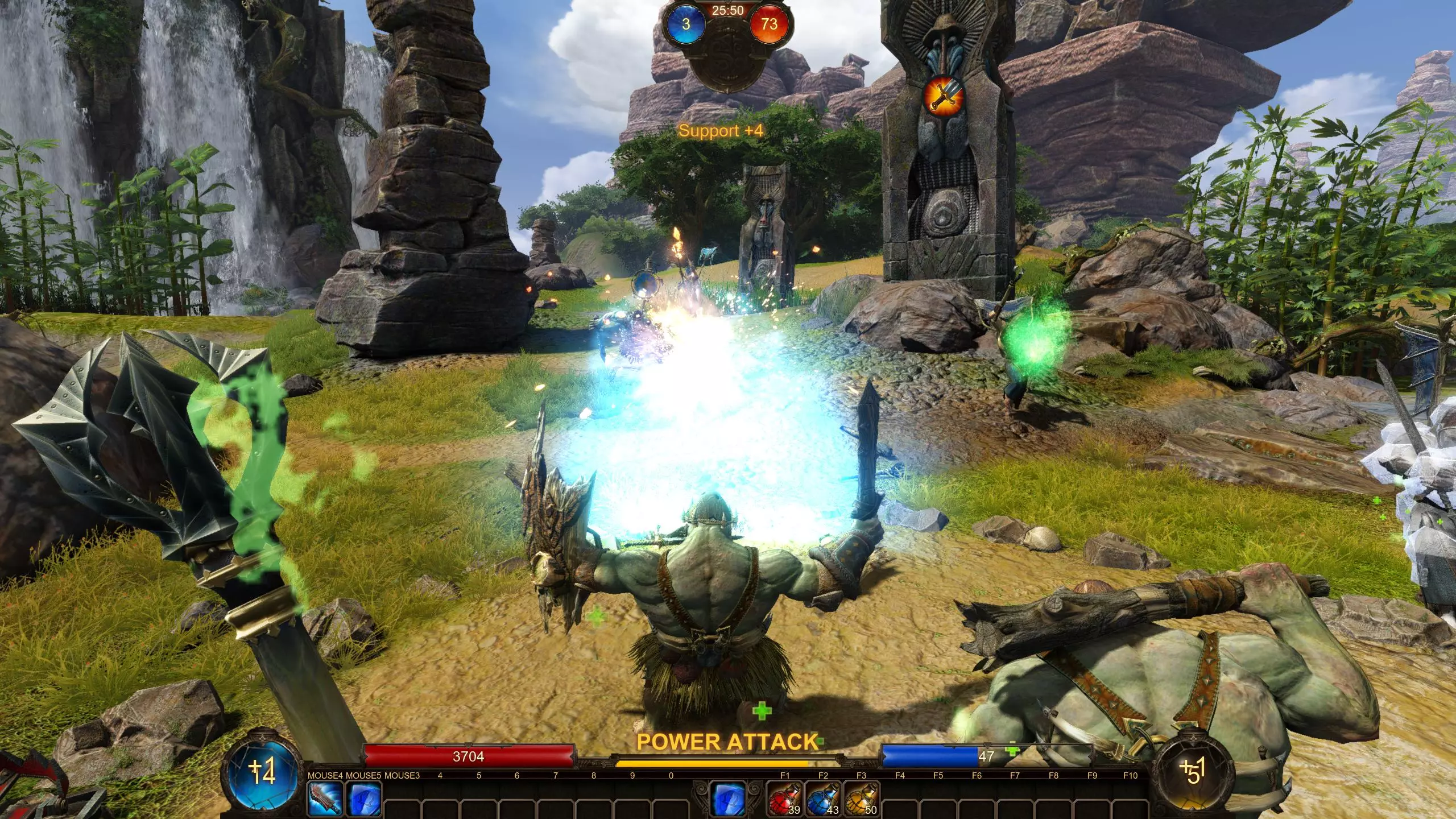 Visszatérve a játék lényegi részére, érdemes pár szót ejteni a pályákról és a játékmódokról. 4 féle mód van és mindegyikhez 2-4 aréna tartozik. Kezdetben csak a legegyszerűbb, a Domination mód és annak 4 pályája van nyitva, de ez nem baj, mert ezen lesz időtök megszokni a játékot és a választott karaktereteket. A kis pálya és az egyszerű cél előnye, hogy ezek a meccsek gyorsabban lezavarhatóak, ha pedig felmásztok a 4-es szint környékére, kinyílik előttetek a világ... Összesen 10 pálya van, a Domination-ön (4) túl pedig még 3 játékmód, a King of the Hill (2), a Siege (4) és a Meteor vár rátok. Utóbbihoz nem volt még szerencsénk, de ha minden igaz, akkor a közismert Capture the Flag egy variánsa. A Siege mód tart általában a leghosszabb ideig és ez is a legbonyolultabb. Ebben már vannak interaktív objektumok, építkezhettek, beülhettek ágyúba lövöldözni, robbanós hordókat is használhattok kapuk áttörésére, így aztán itt a legfontosabb az összhang a játékosok közt. Jó hír, hogy tervben van egy kooperatív mód is, melyben NPC-k hullámait kell majd legyűrnünk.