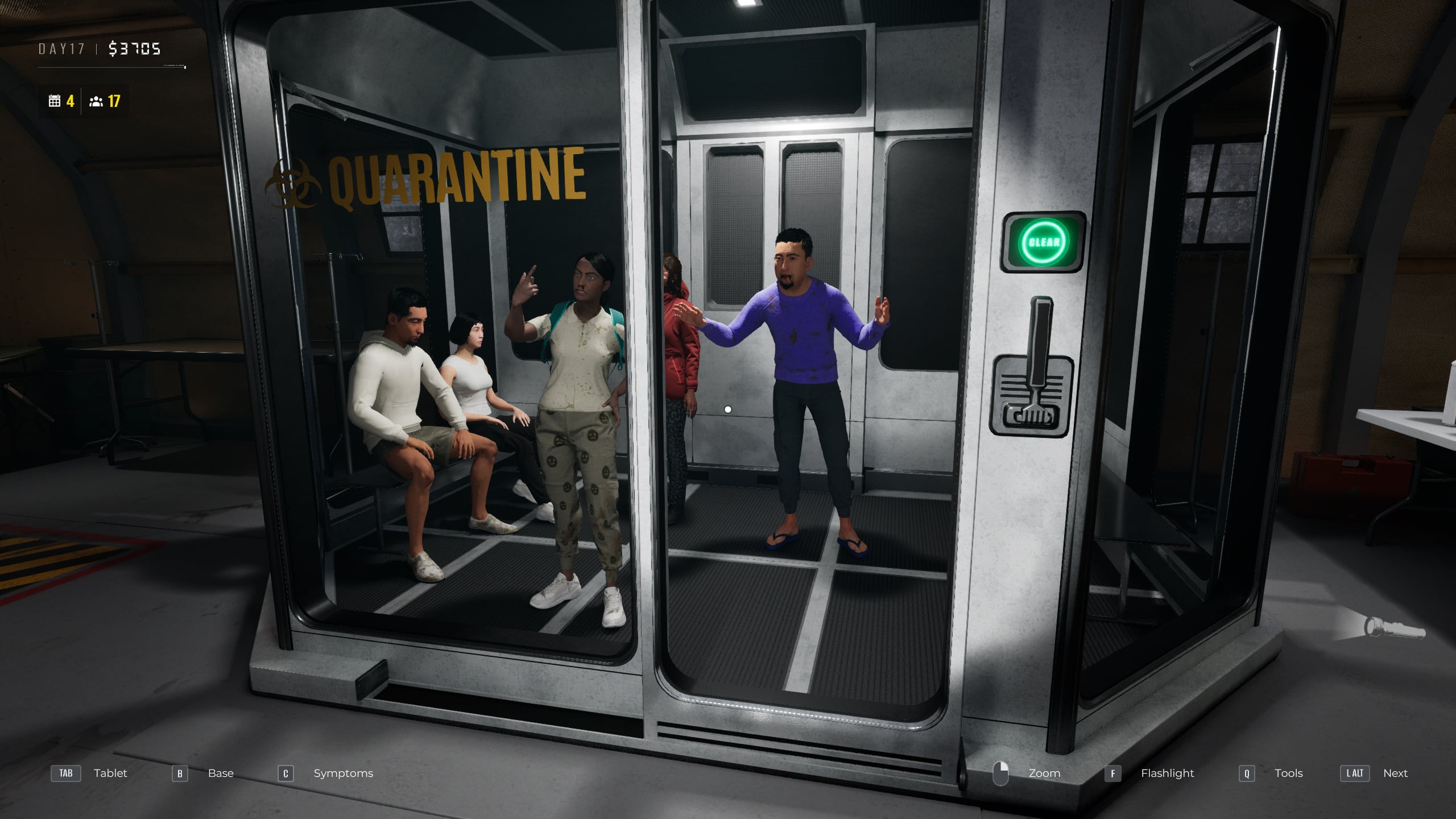 Az sem mindegy, hogy a karanténba küldött emberünk állapota javul vagy romlik, ez utóbbi szerencsénkre biztos jele annak, hogy az illető menthetetlen. Ha viszont ártatlan és egészséges, vagy csak simán beteg civilt végzünk ki, az pénzbüntetéssel jár. A pénz és a kutatási pont viszont a fejlesztések és a bázis fenntartásának a lényege.