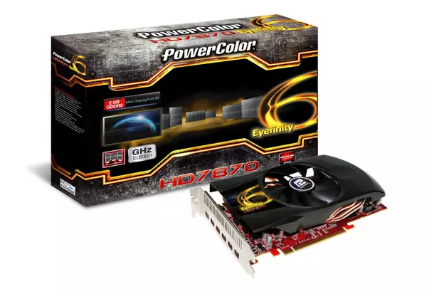 A különleges Radeon HD 7870-es újdonság a PowerColor műhelyéből érkezett. A termék segítségével többféle Eyefinity megjelenítő konfiguráció „építésére” van lehetőség, ami mind a játékosok, mind pedig a maximális produktivitás elérése törekedő felhasználók számára hasznos lehetőség. Az új videokártya ezúttal is 28 nm-es csíkszélességgel készülő, Pitcairn kódnévre keresztelt GPU-t hordoz magán, amely nem kevesebb, mint 1280 stream processzort tartalmaz. Maga a GPU 1 GHz-es órajelen ketyeg, a memóriachipek órajele pedig 4,8 GHz-es értéket képvisel – ezek megegyeznek a referencia értékekkel.