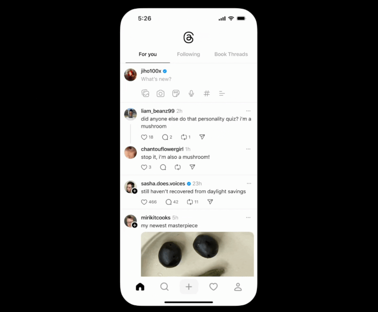Ezek között már váltani is könnnyebb lesz, egyszerű oldalra lapozással képes lesz átmenni a Threads felhasználó egy következő, vagy előző hírfolyamra. Eredetileg ehhez fel kellett tekerni a képernyő tetejére, de gyorsan jött a gesztus alapú lapozás, ahogy az az X-en is elérhető.