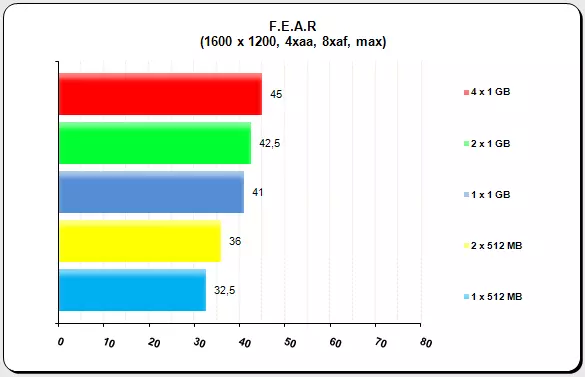 A Company of Heroes volt az egyetlen olyan játék, amely megmutatta az 1 x 512 MB memóriával szerelt rendszer valódi hátrányát a többi konfigurációval szemben. A három különböző felbontás eredményei tükrözik a konfigurációk teljesítménybeli rangsorát. A 2 x 1 GB-os és a 4 x 1 GB-os rendszerek között túl nagy különbség nem érzékelhető, persze utóbbival 1-5 plusz FPS-re tehetünk szert, játéktól függően.