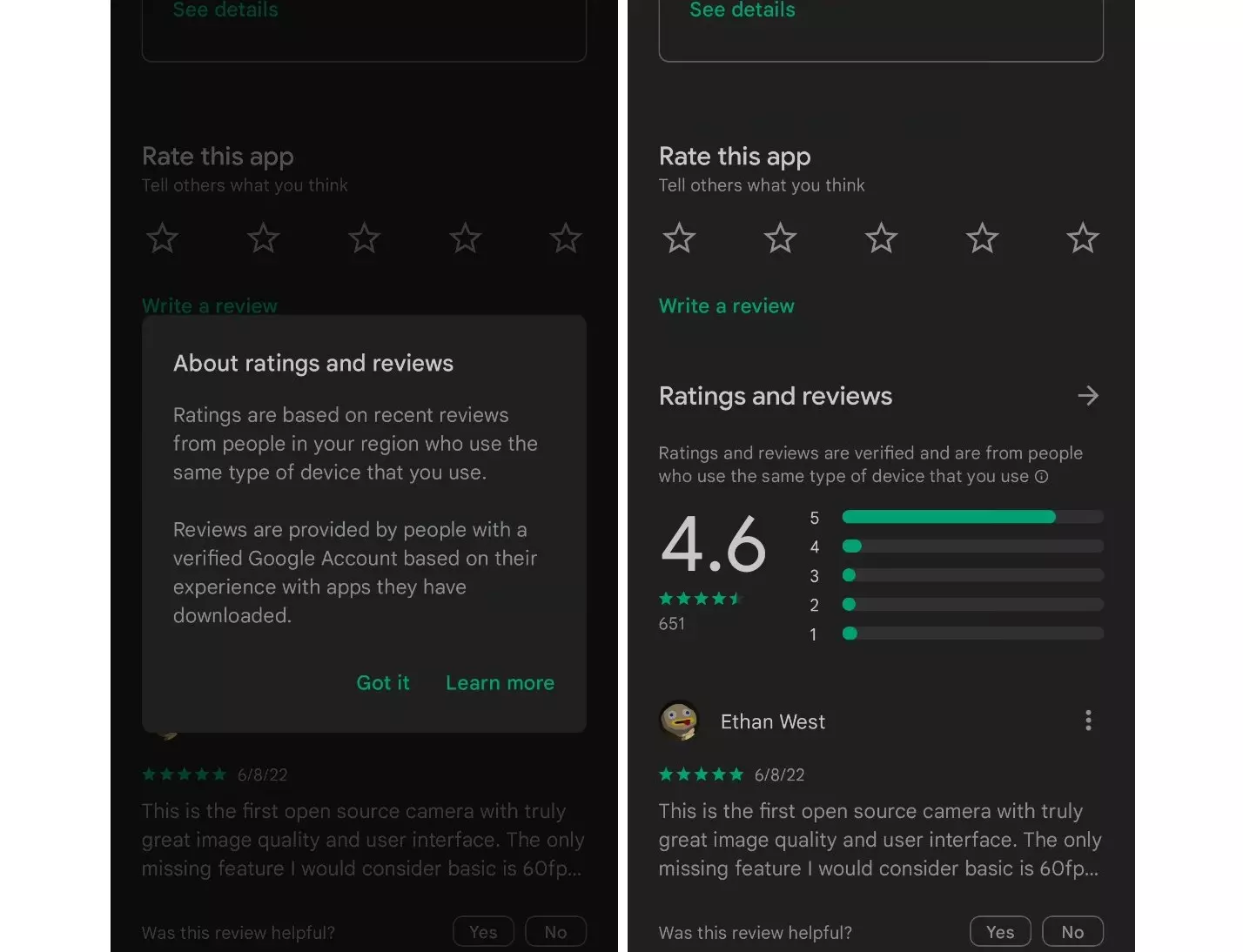 Már tavaly augusztusban beszélt arról a Google, hogy lehetősége lesz az embereknek szűrni a különböző applikációk értékelései között az alapján, hogy milyen eszközt használnak. Úgy volt, hogy ezt legkésőbb 2022 elejére megvalósítja a vállalat, de ez nem jött össze. Legalábbis egészen mostanáig, mert a Google most bejelentette, hogy elkészült ezzel a funkcióval is.