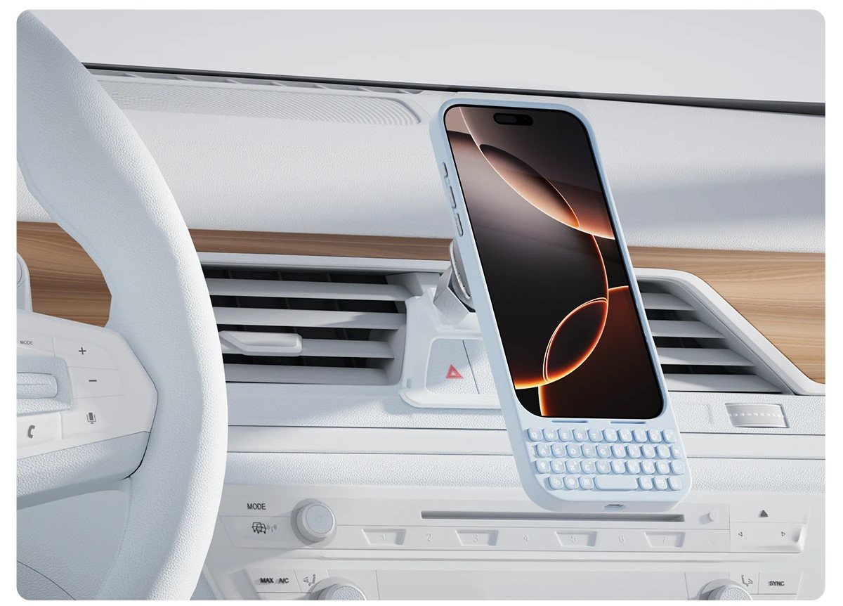 A tok anyaga nem különösebben érdekes, könnyű, de kellő védelmet biztosító TPU a külseje, belül pedig van egy vékony puha bevonat, hogy ne karcolja a burkolatot az esetlegesen bejutó por. Az eszköz az iPhone 16 Pro Max és a 17 Pro Max modellekre érhető el jelenleg, sajnos a kisebb mobilokra még nem szabták rá a kiegészítőt, de talán idővel erre is sor kerül. A billentyűzetes tokok 78,9, illetve 73 gramm tömegűek, az iPhone 16 Pro Maxra szabott változat a könnyebb. A színválaszték bőséges a 17 Pro Maxnál (7 opció van), a 16 Pro Maxra viszont csak fekete, fehér és pink kivitel érhető el jelenleg.
