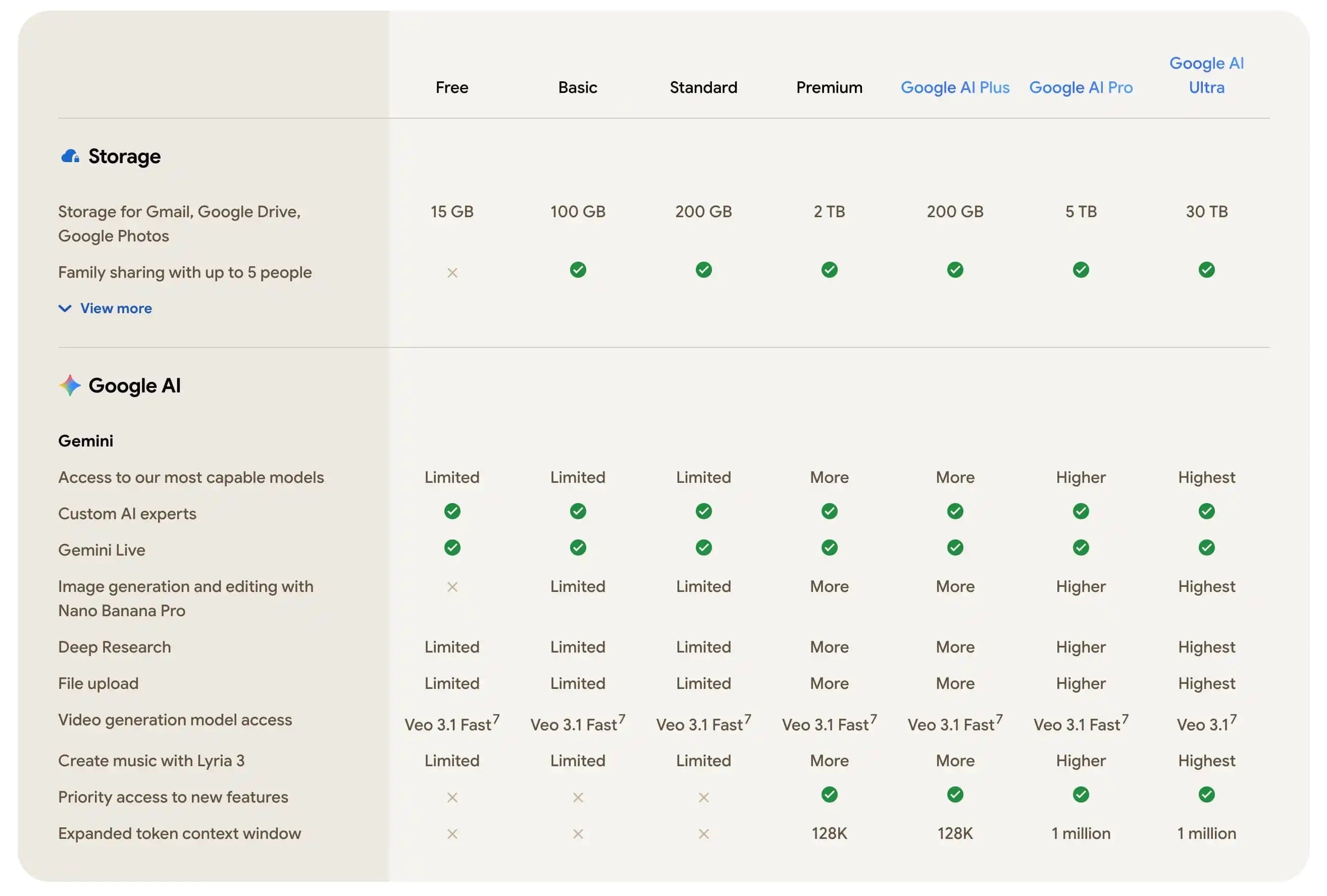 Eredetileg a AI Pro csomagot a Google Premium előfizetés feltuningolásával hozta létre. Innen emelte át a vállalat a 2 TB-os online tárhelyet a Google Fotók, a Drive, a Gmail és más szolgáltatások számára. A cég ennél az opciónál sajnos megtartotta a korábbi 2 TB-os limitet, ezt nem emelte meg 5 TB-ra. A Google Premiumban is vannak egyébként MI eszközök, például biztosítja a NotebookLM szabadabb használatát, valamint a Whisk és a Flow elérést is, továbbá videók gyártására is lehetőséget biztosít a Veóval. Ezért pedig havi 3590 forintot kér a keresőóriás.