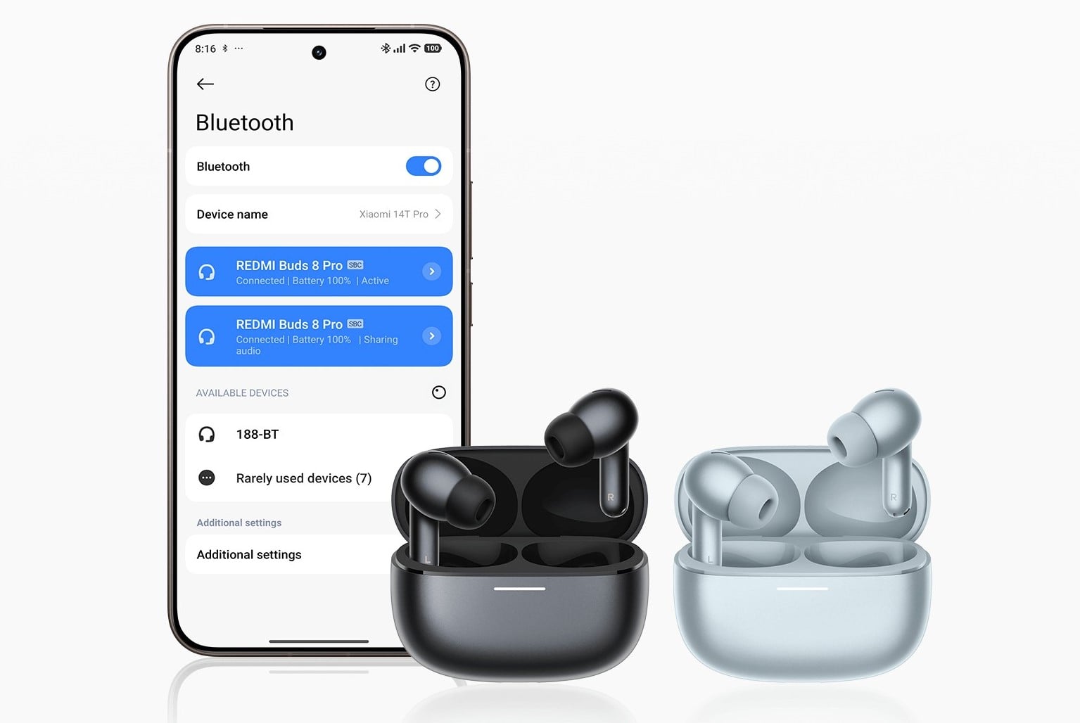 A kínaiak február elején leplezték le a Redmi Buds 8 Pro valódi vezeték nélküli fülhallgatót, és már ez is megjelent az MWC-n, mivel indul a globális forgalmazása. Ez egy kiváló ár-érték arányú fülesnek ígérkezik még a hazai ára mellett is. A tervezők a Buds 8 Prót három hangszóróval ruházták fel, és támogatja az LDAC kodeket is, amivel megoldható a lossless tartalmak átvitele. Aktív zajszűrést is ígér az eszköz, méghozzá 55 dB-es hatékonyság mellett.