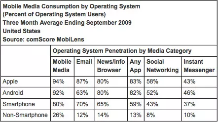Visszatérve azonban az Androidra, említésre érdemes a tény, hogy augusztus óta (amikor még csak a G1 és a myTouch 3G állt rendelkezésre, mint Androidos készülék) szinte robbant iránta a kereslet, mivel akkor még csak 7%-nál járt. Az új készülékek megjelenése mellett az iPhone-éhoz igen hasonló adathasználati lehetőségek (külső alkalmazások, e-mail, média, web, stb.) is sokat lendítettek - és várhatóan fognak a jövőben is - az Android ügyén.