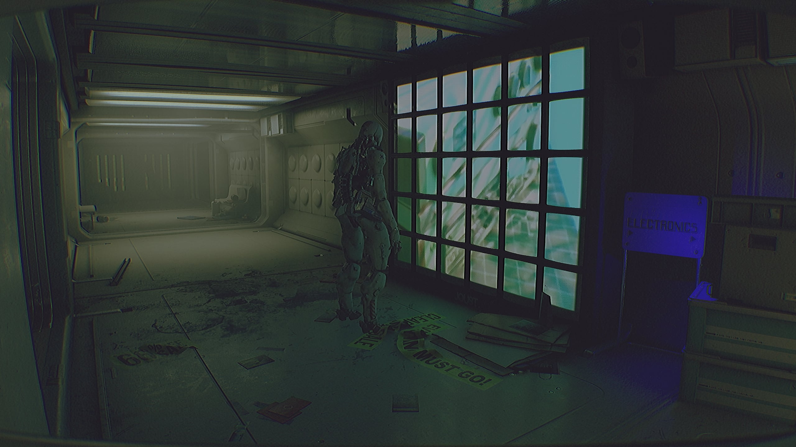 A játék vizuális világa az alternatív retrofuturizmus jegyében született. Az 1970–80-as évek technológiai elképzeléseit idéző környezet – katódsugárcsöves kijelzők, mechanikus kezelőfelületek, nyers, funkcionális terek, rideg fémfolyosók – nem csak díszletként működik, hanem azt az érzetet erősíti, hogy ez a bázis egykor élő, működő rendszer volt, amelyet most csak a technológia visszhangjai laknak be. A holdbázis tereiben nincs díszletjellegű túlzás, minden elem funkcionálisnak tűnik, mintha valóban egy működő infrastruktúra maradványai között járnánk.