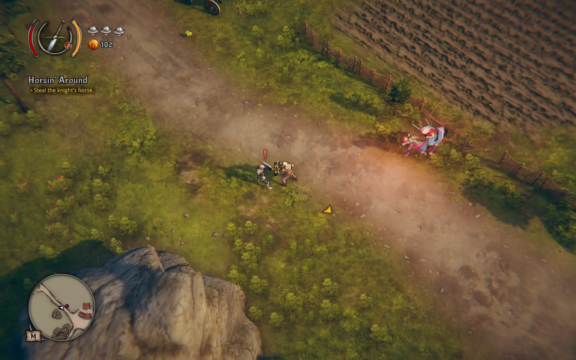 A harcot nem bonyolították túl a fejlesztők, amerre az egér néz arra ütünk vagy védünk és már csak rajtunk múlik, hogy szálfegyverrel, kard és pajzs kombóval verjük szét ellenségeinket, vagy számszeríjat ragadunk, esetleg botot. Verdákat is szerezhetünk, amik között komoly különbség lesz tartósság és sebesség tekintetében, de amúgy mindannyian egy szériából származnak, aminek a neve: ló. Tájékoztató lesz az egy lóerős járművek neve is, vagyis Horspeed-nél valóban száguldásra számítsunk, ahogy Cabronco-nál is, de Horstoise inkább egy jól páncélozott teknőc, Fourhoof egy átlagos hátas, Guardneigh pedig „rendőrautó”.