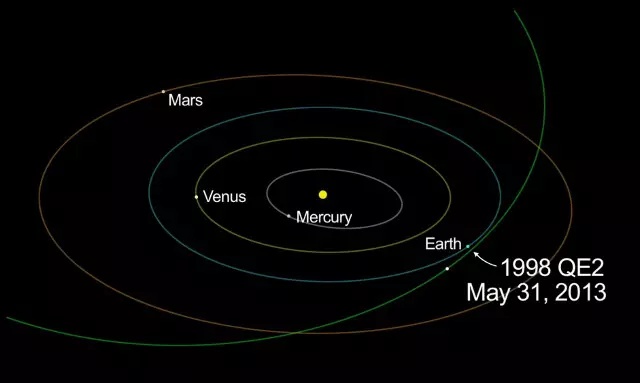Péntek éjszaka egy tekintélyes méretű aszteroida száguld el a Föld mellett, amelyről tegnap kiderült, hogy egy saját holddal is rendelkezik. Az 1998 QE2 közép-európai idő szerint ma este 22:59-kor éri el földközelpontját, ekkor 5,8 millió kilométerre lesz bolygónktól, ez a Hold távolságának körülbelül 15-szöröse. A 15 évvel ezelőtt felfedezett égitest szabad szemmel ekkor sem lesz látható, mivel mindössze 11 magnitúdós fényességet produkál, a komolyabb csillagászati műszerek, és főként a rádiócsillagászati készülékek számára azonban érdekes célpontnak ígérkezik, főleg hogy a következő két évszázad folyamán nem kerül újra hasonlóan közel a Földhöz. Az elhaladás előtt és után így két hatalmas rádiótávcsővel (Goldstone, Arecibo) is letapogatják az égitest felszínét, 3,75 méteres felbontással jelenítve meg annak részleteit.