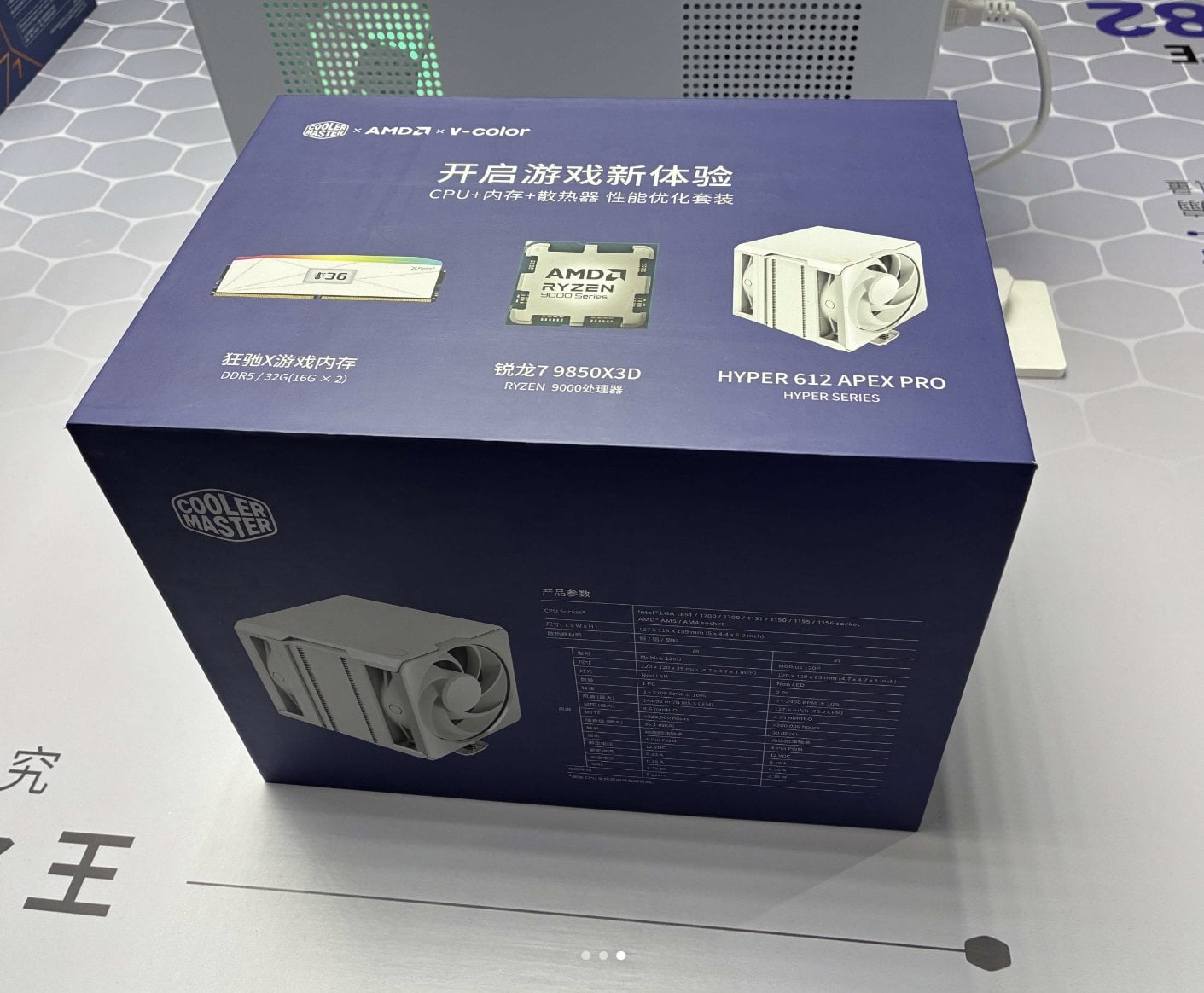 A speciális csomag, ami első körben még csak Kínában tűnt fel, a doboz alapján a RYZEN 7 9850X3D mellett tartalmaz majd egy V-Color gyártmányú DDR5-ös memóriacsomagot és egy Cooler Master gyártmányú processzorhűtőt is, így összesen 1000 dollár körüli értéket tartalmaz, az viszont még nem derült ki, pontosan hogyan alakul a kedvezményes ára. A csomagra a Uniko’s Hardware munkatársai figyeltek fel, akik gyorsan világgá is kürtölték észrevételeiket az „X” virtuális hasábjain keresztül.