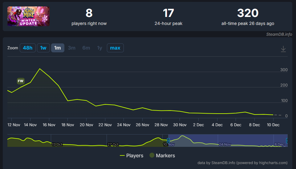 A játék a megjelenése óta finoman szólva senkit sem érdekel. A kezdeti ingyenes hétvégén volt 320 játékosuk, ám amint újra fizetőssé vált a cím, beállt globálisan 100 fő alá. A cikk írásakor nem többen, mint nyolcan játszanak vele, amit nehéz lenne sikerként elkönyvelni.