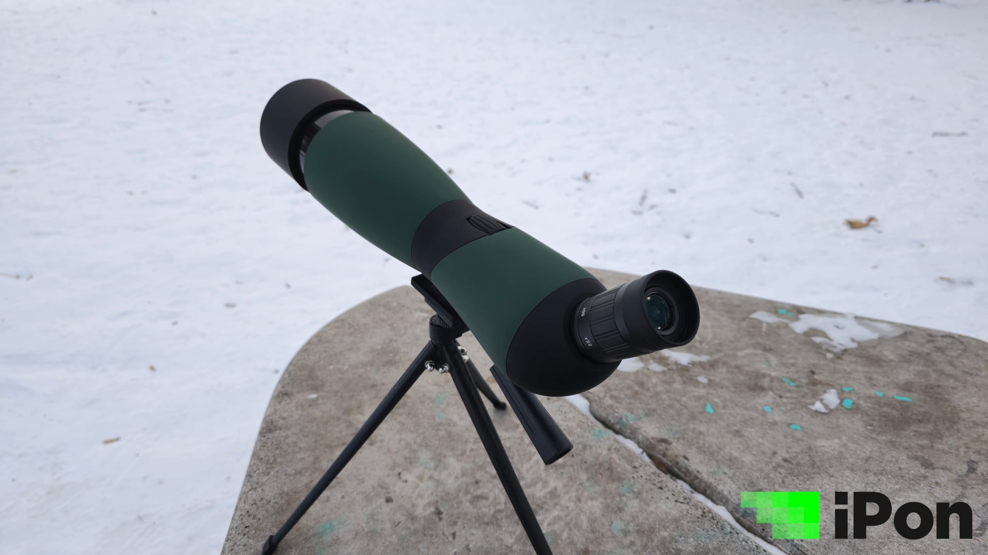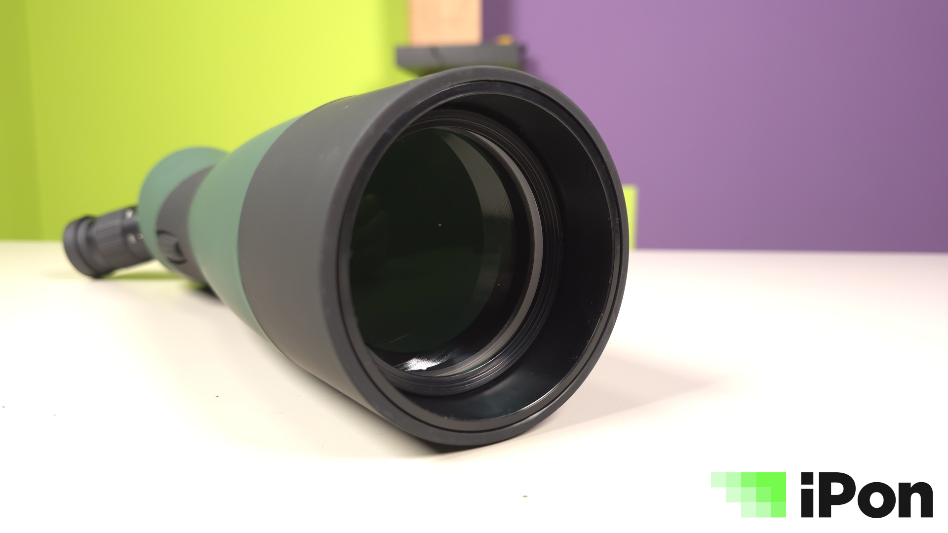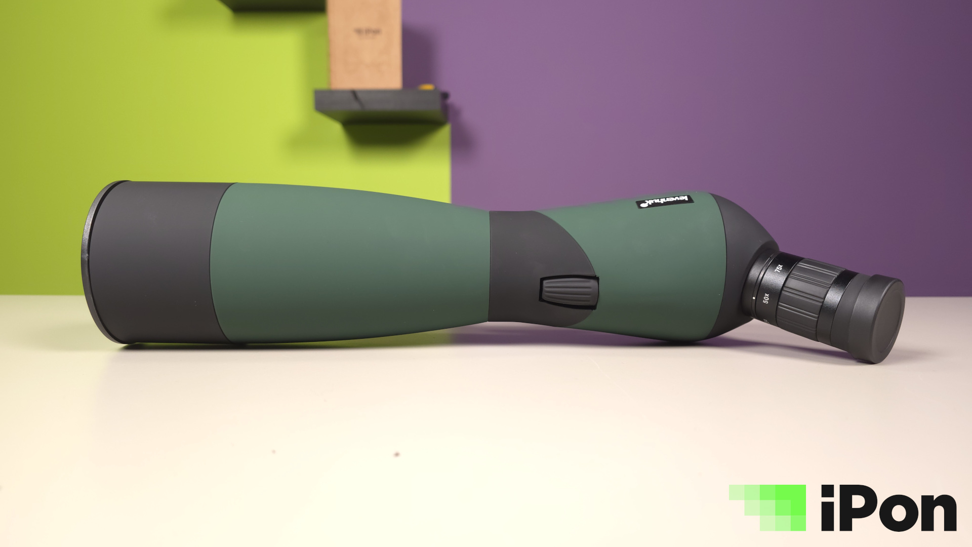 A távcső elvárható módon mellőzi a rikító színeket és a sötétzöld, illetve fekete színekre korlátozódik, hogy lehetőleg az erdőben se keltsen feltűnést. Aki esetleg nézett már csillagásztávcsőbe, annak ismerős lesz a kialakítás az objektívlencse felé vastagodó testtel, illetve a szögben döntött szemlencsével. Utóbbi fontos részlet, hiszen jóval kellemesebb simán előre hajolni, mintha valahogy be kellene erőltetnünk magunkat közvetlen a távcső hátsó végéhez, ami aligha lenne életszerű.